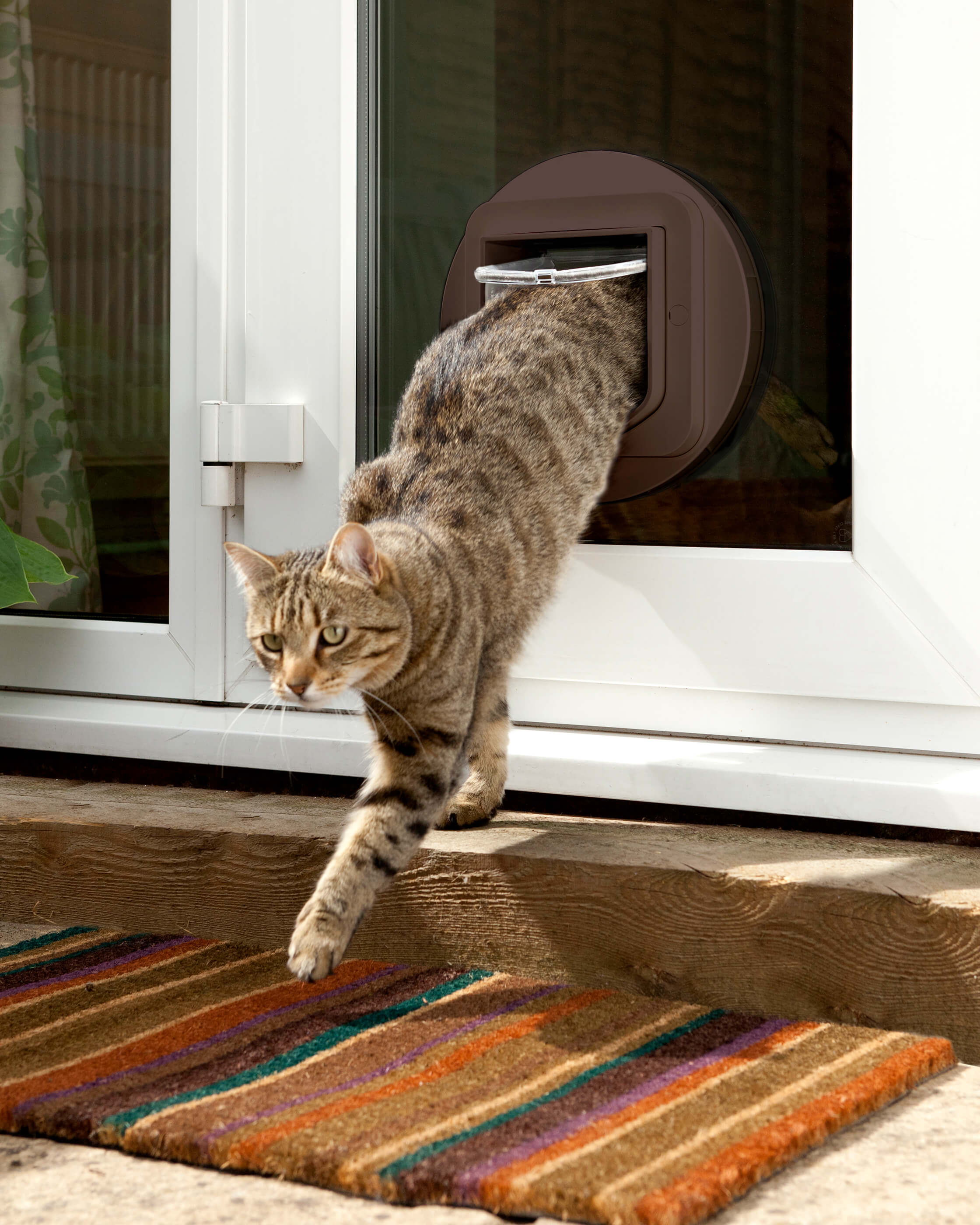 Mit der Vierfachverriegelung kannst du die Tür in jeder Kombination für drinnen und draußen verriegeln. Der Tierarztmodus beispielsweise ermöglicht deiner Katze den Zutritt ins Haus, lässt sie aber nicht hinaus, sodass sie für den nächsten Termin beim Tierarzt bereits im Haus ist.