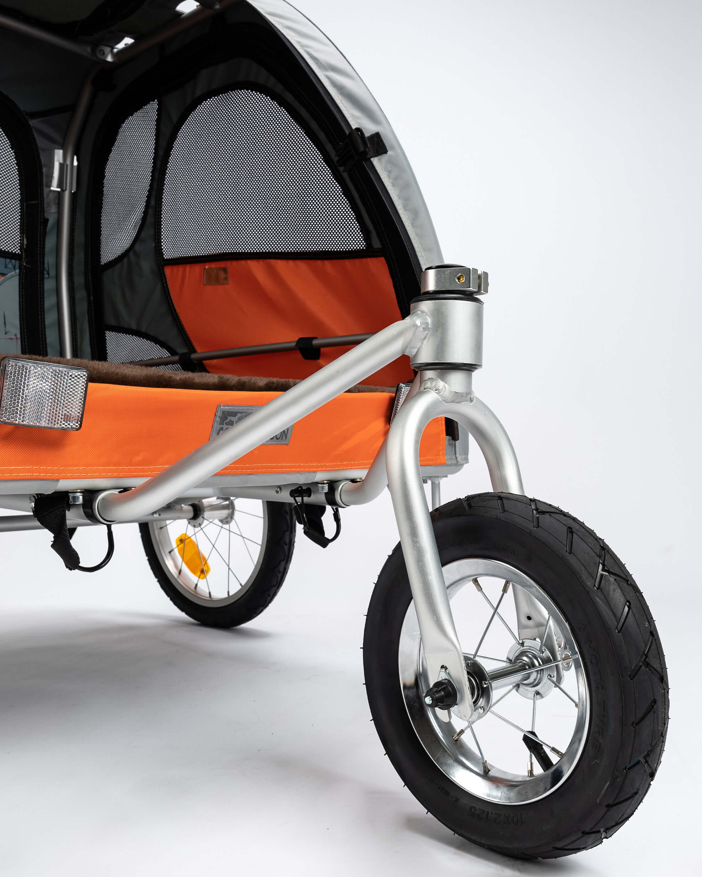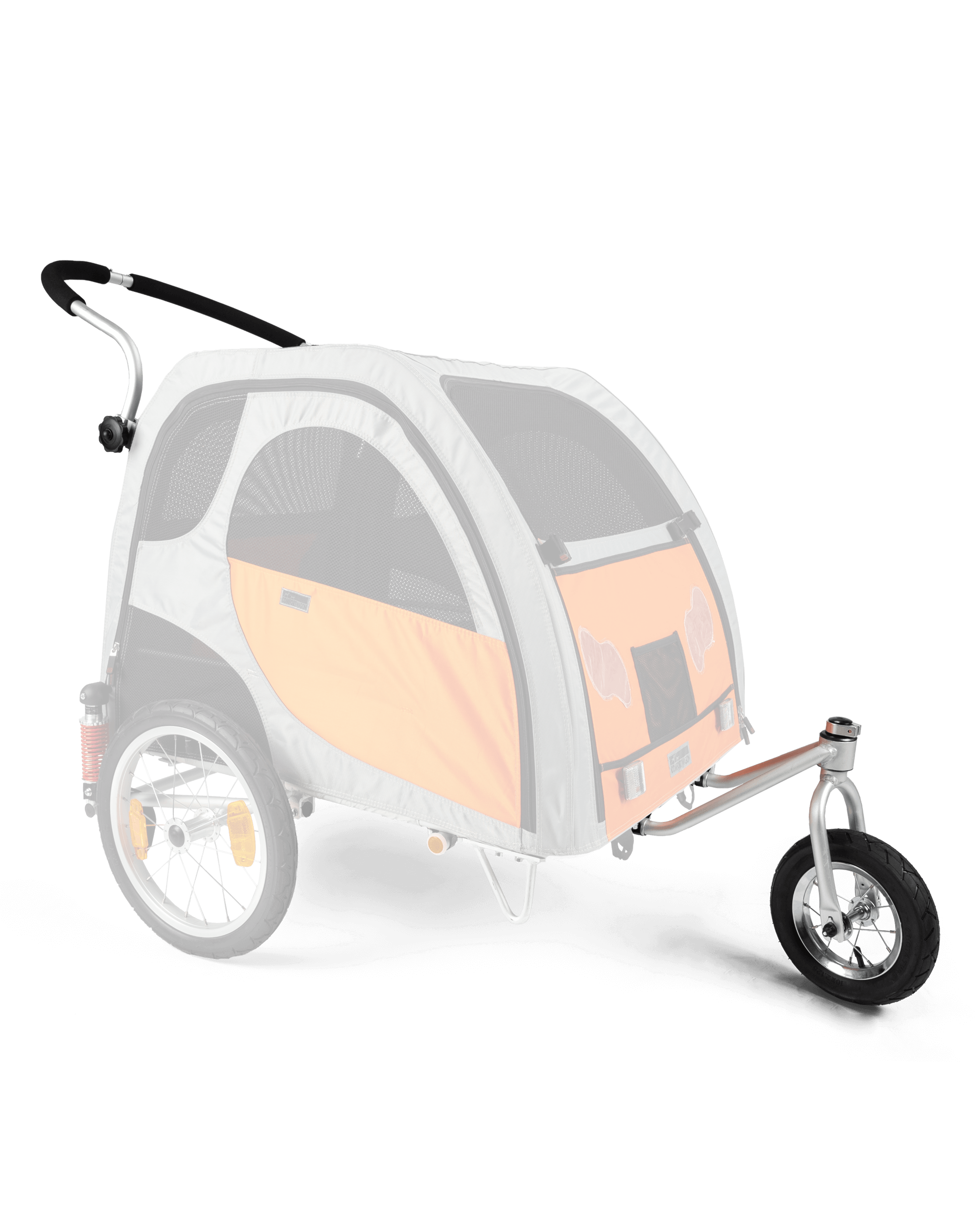 Dank des durchdachten Designs lässt sich das Stroller-Kit einfach und schnell anbringen – ganz ohne Werkzeug. Das lenkbare Vorderrad sorgen für eine angenehme, leichte Handhabung und eine besondere Wendigkeit.