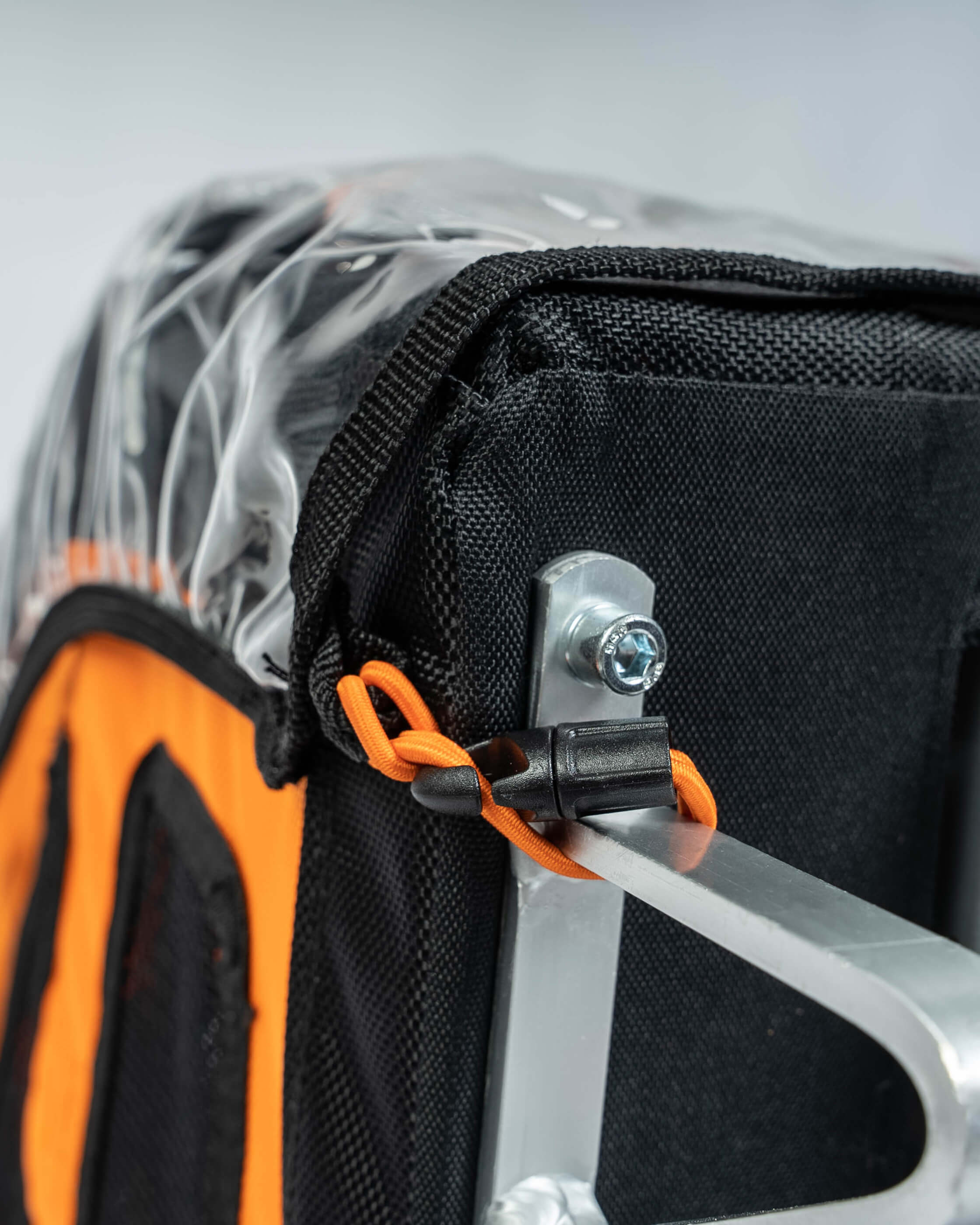 Das Regencover lässt sich mithilfe von 4 Gummisicherungen schnell anbringen und ebenso leicht wieder entfernen. Es sitzt passgenau auf dem DogBus und kann platzsparend verstaut werden, wenn es nicht gebraucht wird.