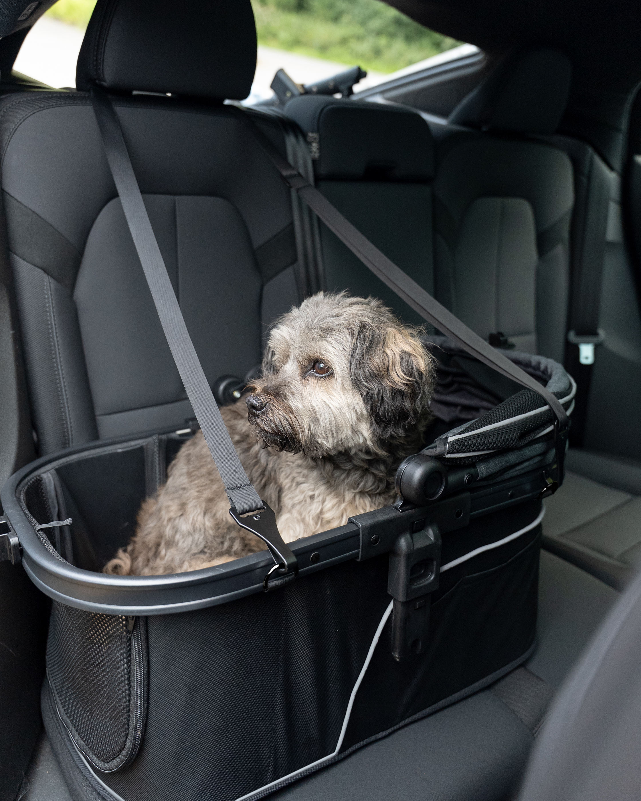 Der großzügige Sitzkorb lässt sich einfach entnehmen und im Fahrzeug sichern. So wird der Walk im Handumdrehen zu einer sicheren Transportlösung. Ihr Hund bleibt entspannt liegen – ganz ohne zusätzliches Umsetzen.