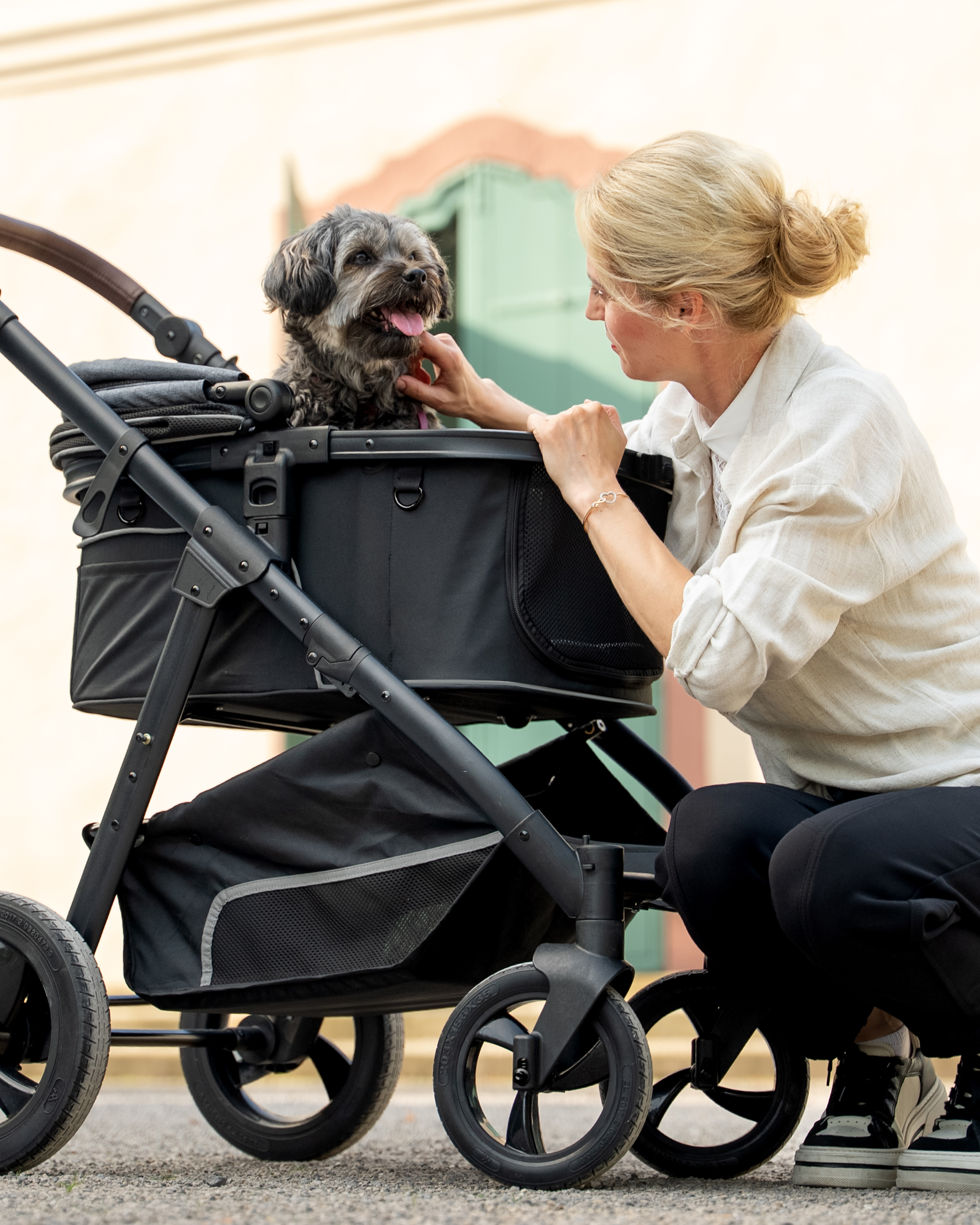 Der robuste Aluminiumrahmen macht den Walk Hundebuggy besonders stabil, ohne dabei unnötig schwer zu sein. Dadurch bleibt er leicht manövrierbar und überzeugt im Alltag durch ein angenehmes Fahrgefühl.