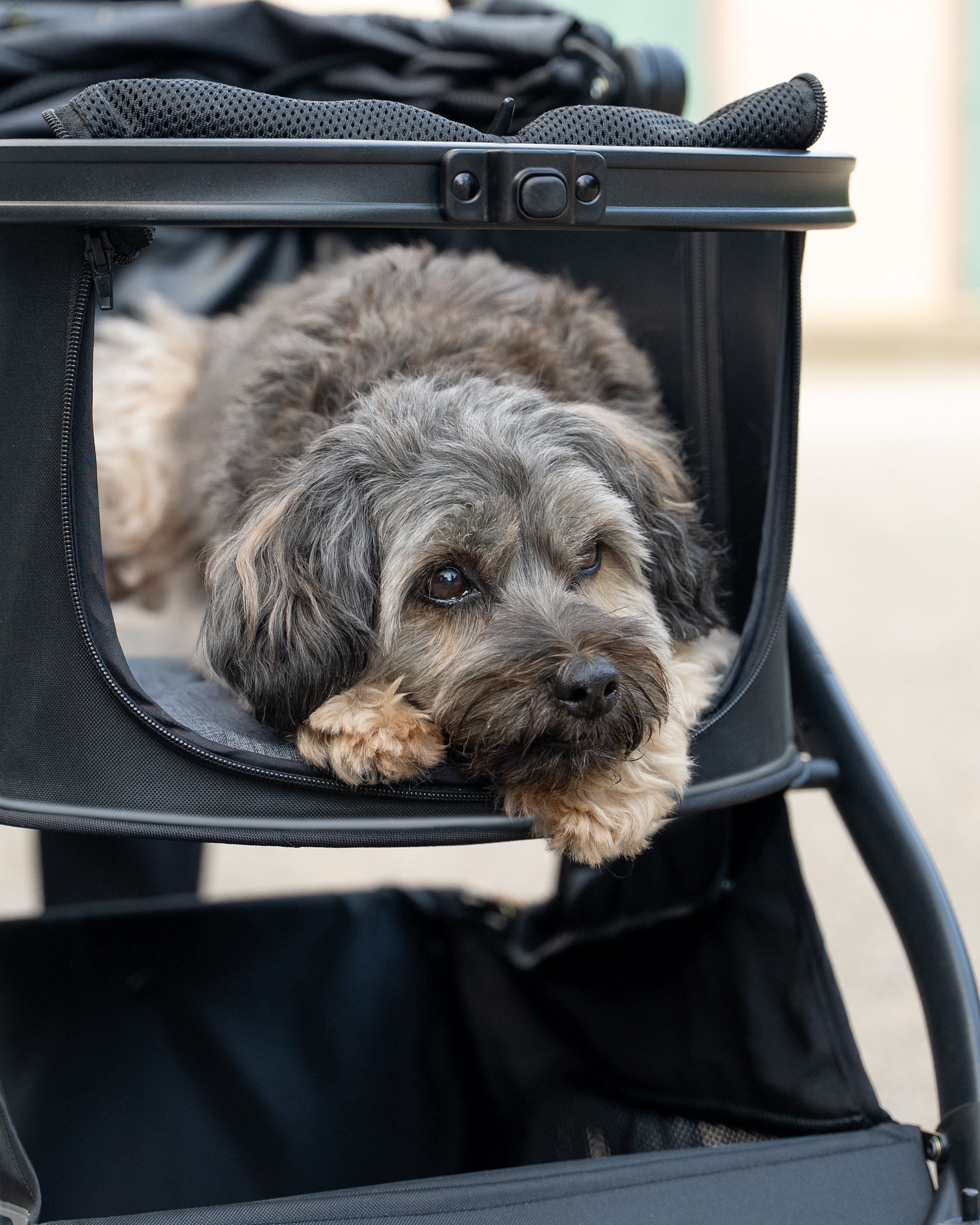 Als stabiler Wagen konzipiert, schafft er einen geschützten Rückzugsort und sorgt dafür, dass Ihr Hund jederzeit entspannt unterwegs ist.