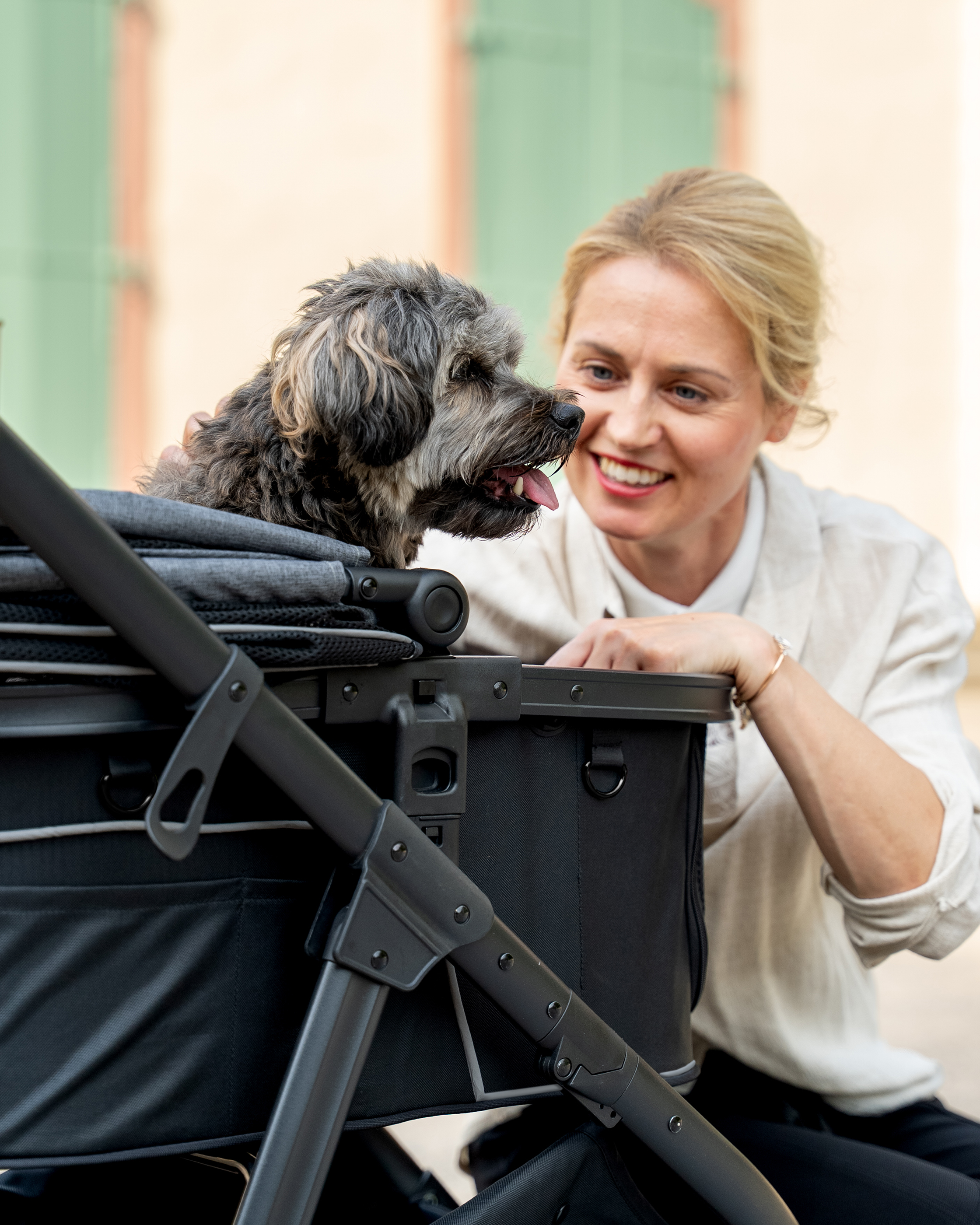 Dank der verstellbaren Griffhöhe kannst du den TrendPet Walk ganz einfach an deine Körpergröße anpassen. So schiebst du den Buggy jederzeit ergonomisch und komfortabel – auch auf längeren Spaziergängen.