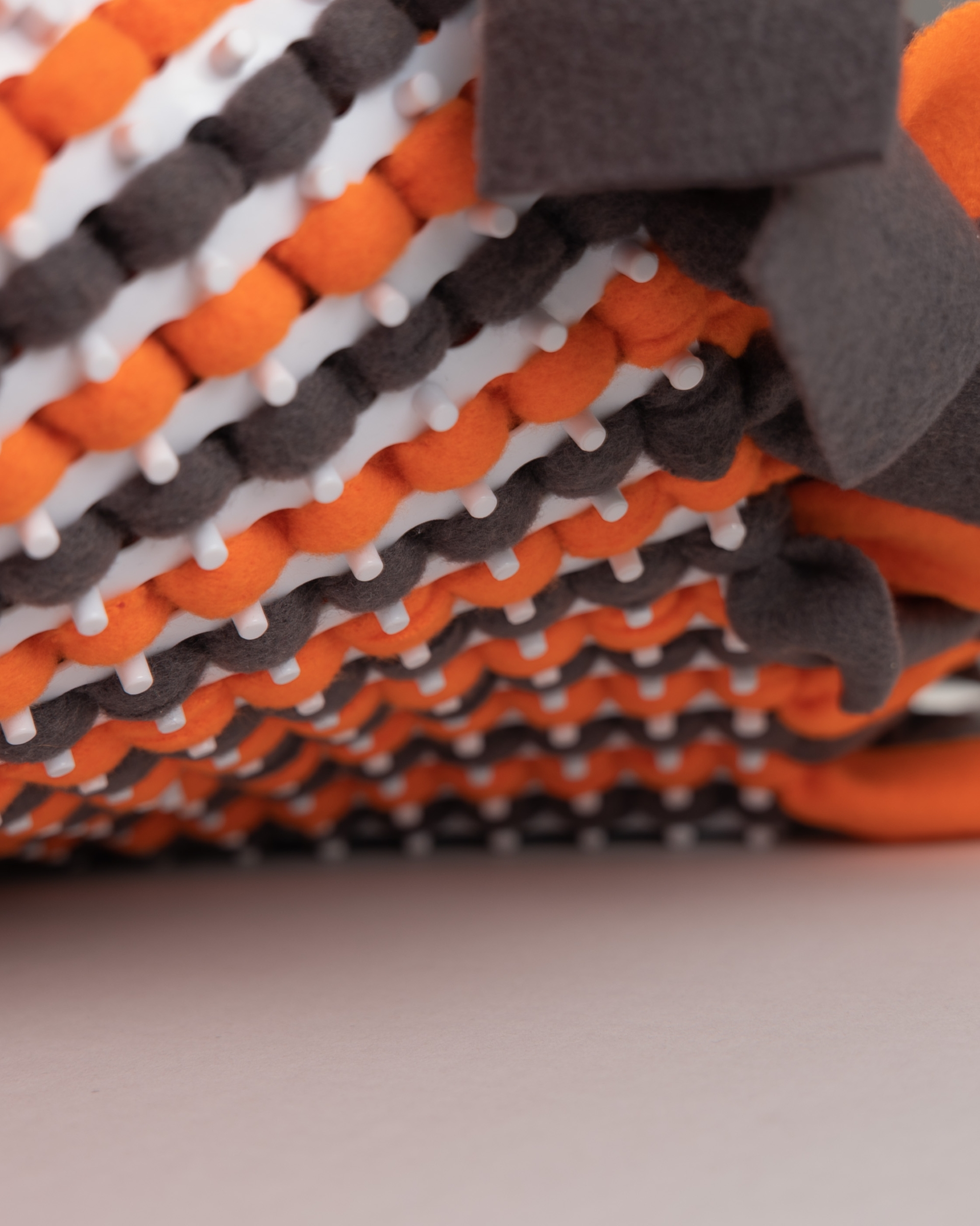 Einfach Leckerlis zwischen den weichen Filzstreifen verstecken – schon beginnt das fröhliche Suchen und Schnüffeln! Der Teppich ist handgebunden aus hochwertigem Filz und sorgt für langanhaltenden Spielspaß.