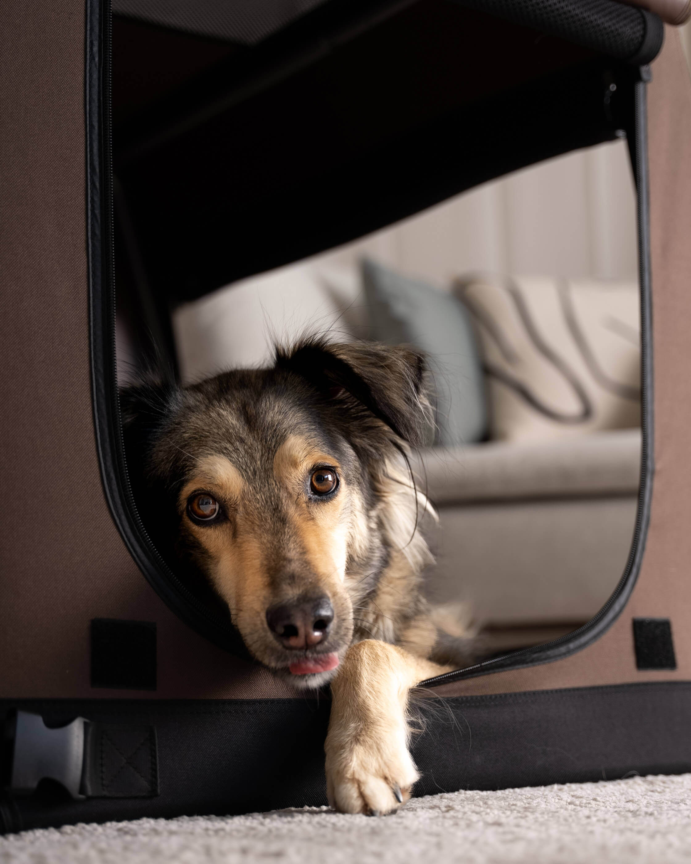 Die strapazierfähigen OctagonPro-Netze bieten rundum eine sehr gute Luftzirkulation. Bei Bedarf lassen sich die Rollos an allen vier Seiten schließen – für mehr Ruhe, Geborgenheit oder Schutz vor Zugluft. Zwei Eingänge, vorne und seitlich, sorgen für bequemes Ein- und Aussteigen, selbst im Auto. Durch die abgeschrägte Rückseite nutzt die Box den Platz im Kofferraum optimal aus.