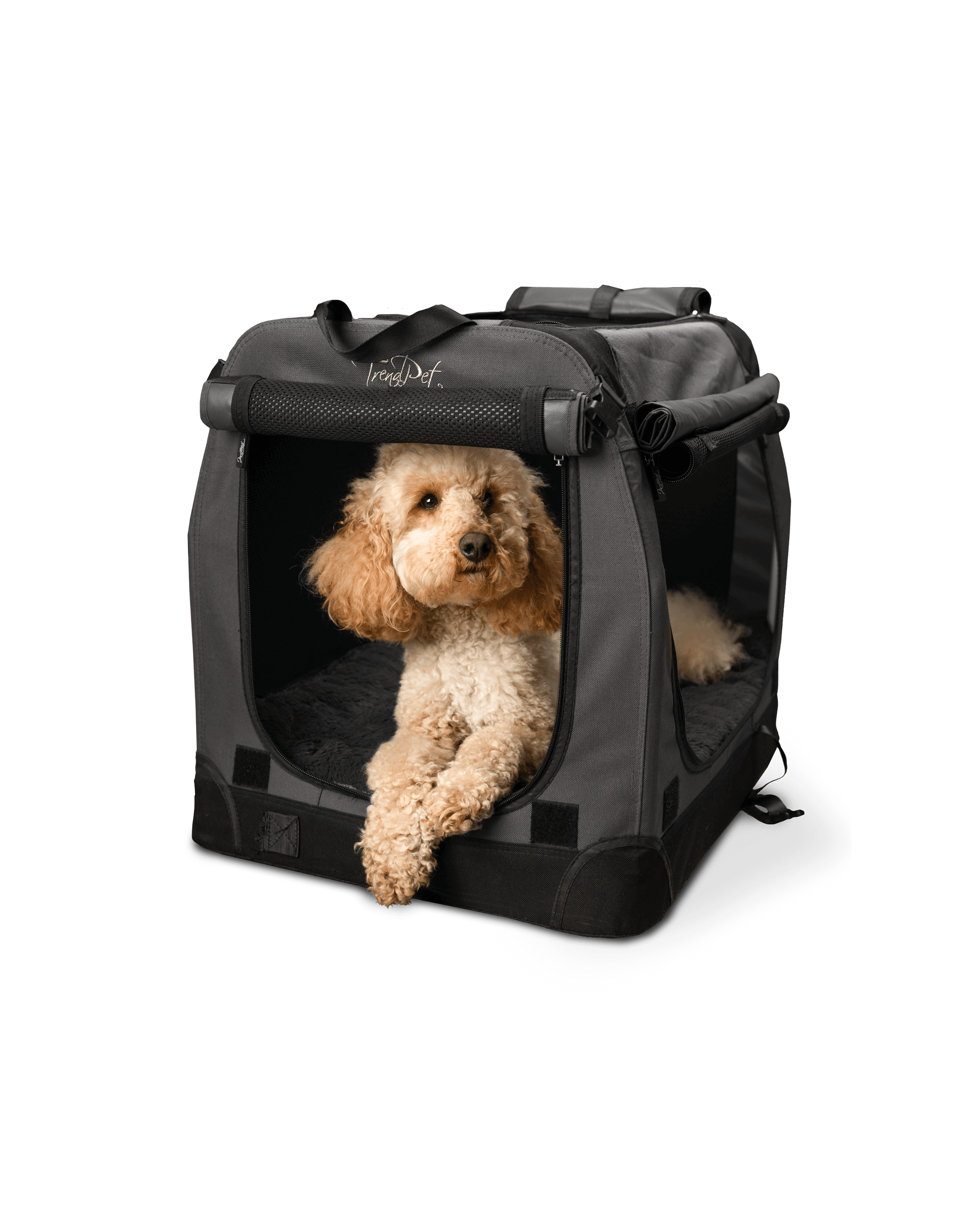 Die TPX lässt sich einfach reinigen und pflegen – ganz ohne Waschmaschine oder Trockner. Für die regelmäßige Reinigung der faltbaren Hundebox reicht es aus, lose Haare und Schmutz mit einem Staubsauger oder einer Bürste zu entfernen. Flecken kannst du mit einem feuchten Tuch, lauwarmem Wasser und etwas mildem Reinigungsmittel vorsichtig abwischen. Lasse die Hundebox anschließend gut an der Luft trocknen und vermeide direkte Hitzequellen wie Heizung oder Föhn. So bleibt das Material formstabil und langlebig. Für mehr Hygiene empfiehlt es sich, eine herausnehmbare Decke oder Matte - wie z. B. die gemütliche Harmony-Decke oder die viscoelastische VitaMedog-Matratze - in die Box zu legen, die du separat waschen kannst. Mit dieser einfachen Pflege bleibt die Transportbox sauber, hygienisch und angenehm für deinen Hund.