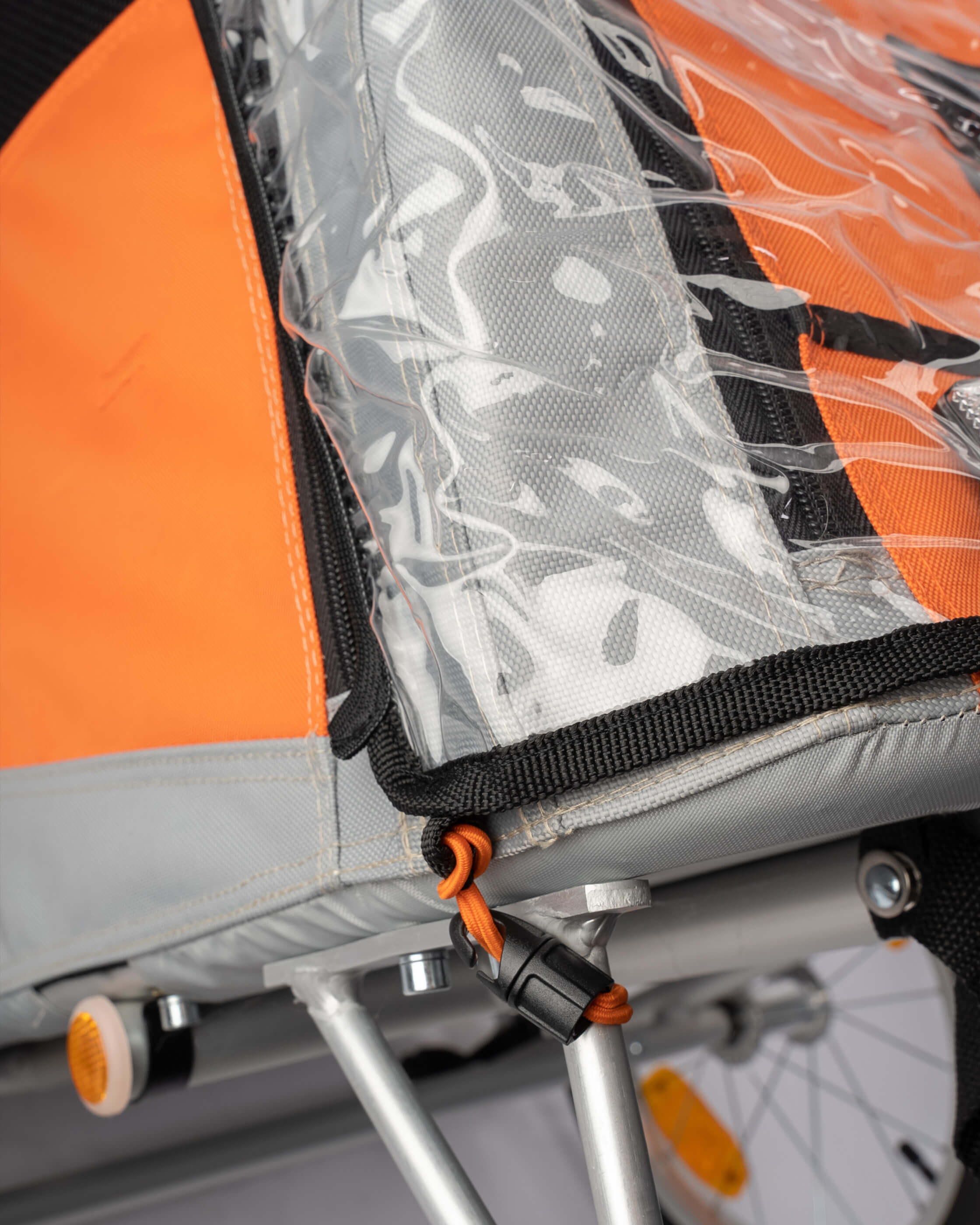 Das Besondere: Ein- und Ausstieg sind möglich, ohne das Regencover abzunehmen. So bleibt dein Hund jederzeit bequem erreichbar und du sparst dir umständliches Ab- und Aufziehen.