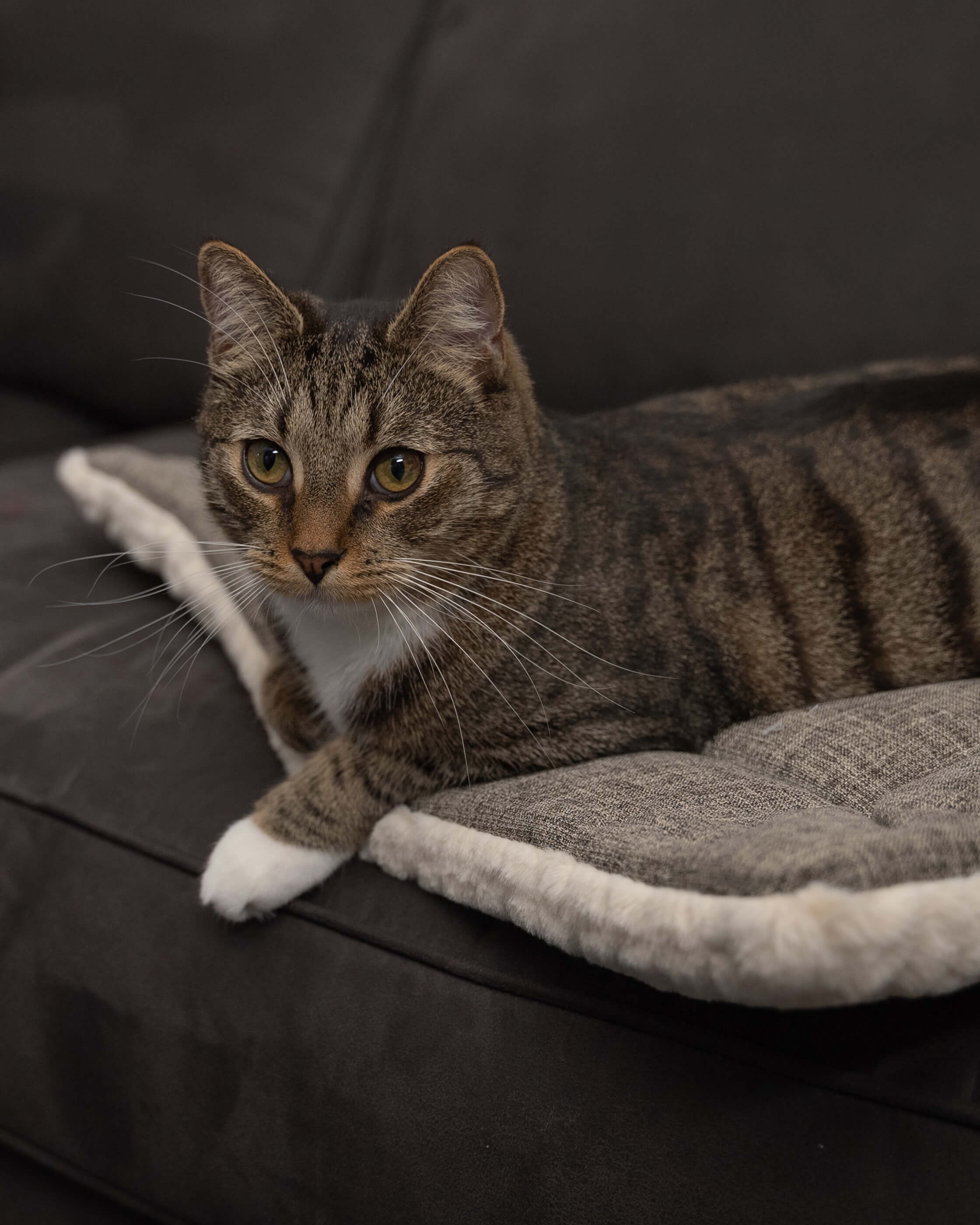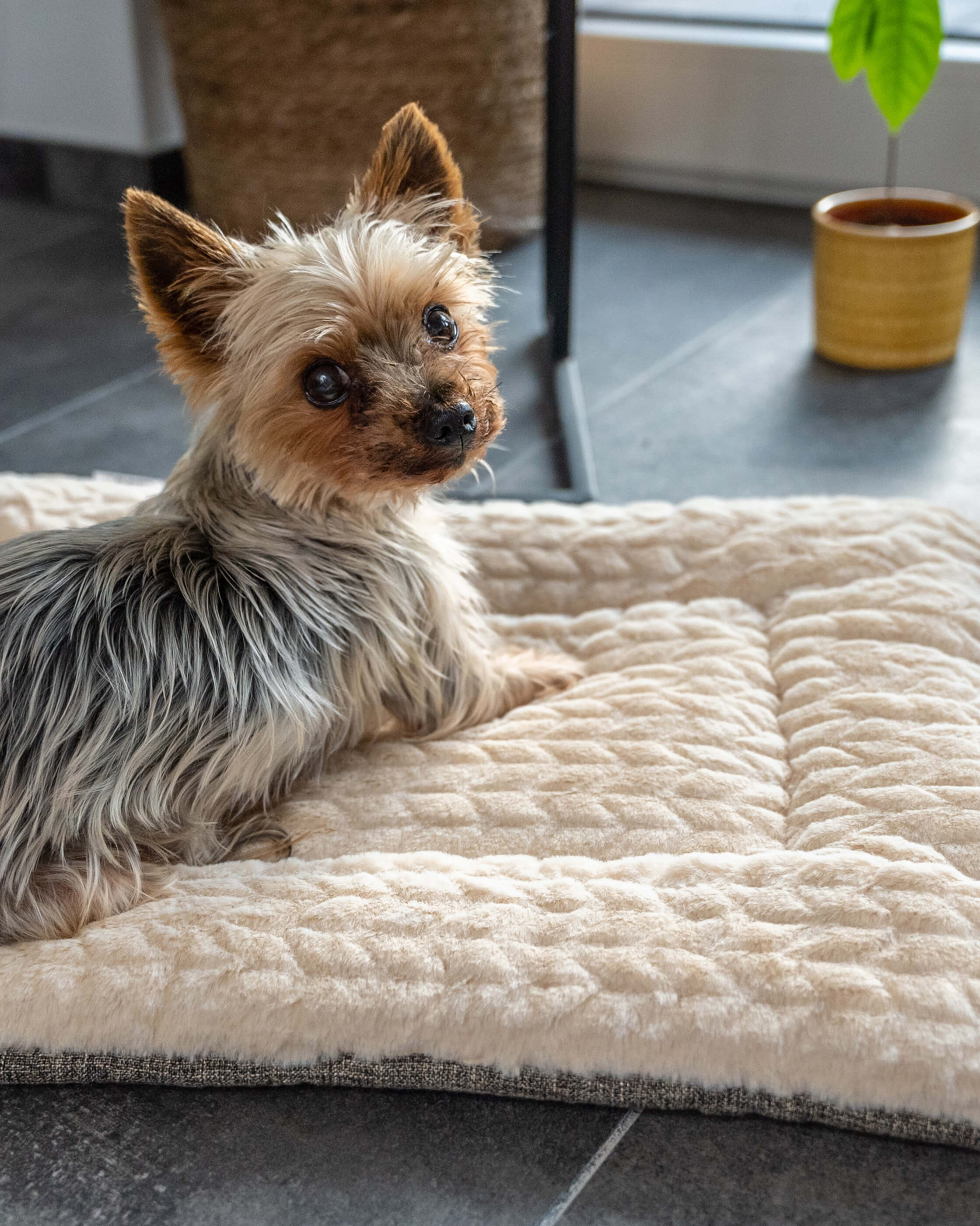 Der Strukturstoff passt farblich natürlich zur kuscheligen Seite. Aufgrund der Größenauswahl von sechs Größen, ist für jeden Hund und jede Katze die passende Decke dabei. Ob als freier Liegeplatz, als Ergänzung in der Box oder als Decke auf dem Sofa oder der Fensterbank.