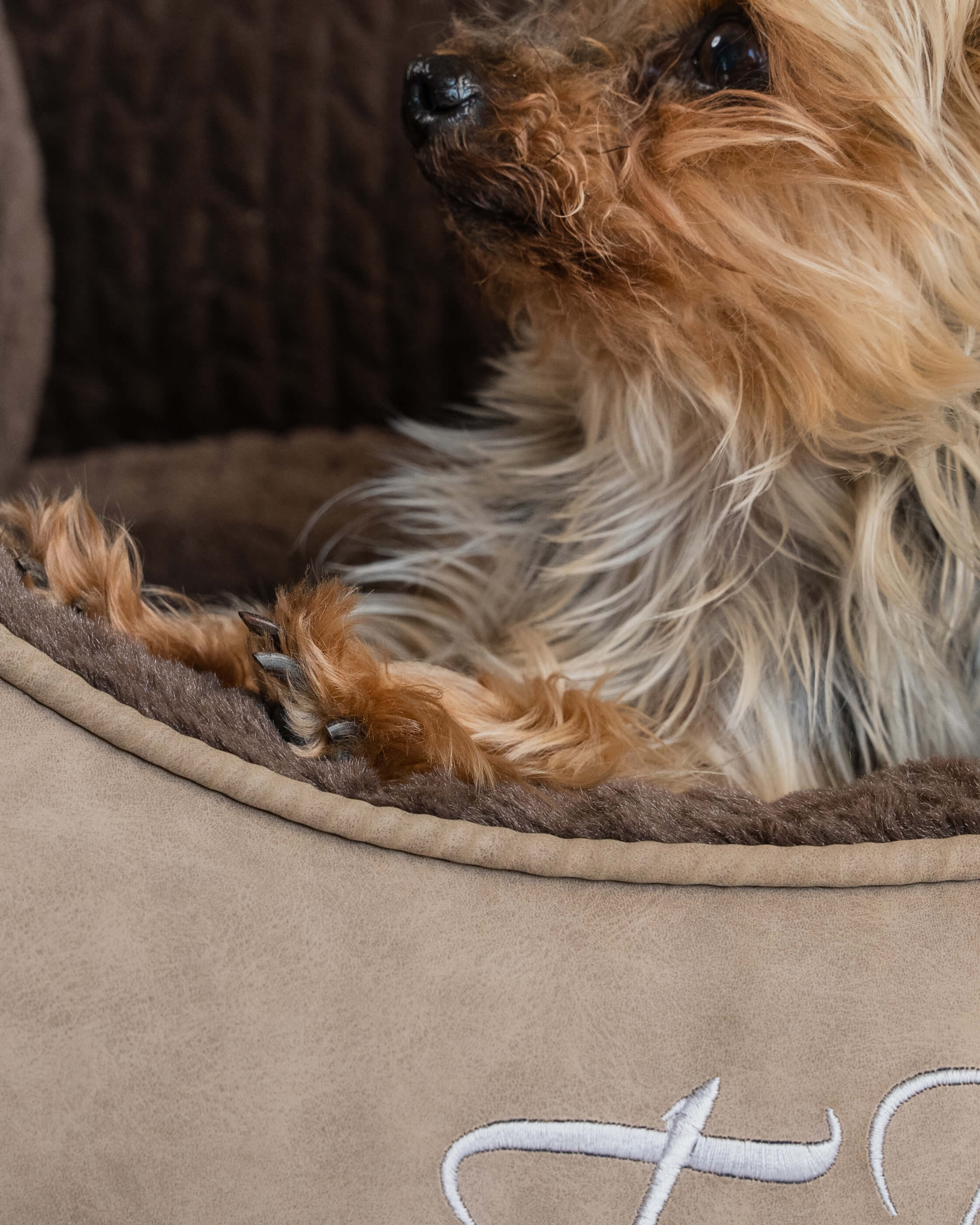 Der dick gepolsterte Rand des VitaBed Styles bietet zusätzlichen Komfort und eignet sich perfekt als Auflage für den Kopf. Dank der hochwertigen Füllung bleibt das orthopädische Hundebett formstabil und langlebig – selbst bei täglichem Gebrauch.