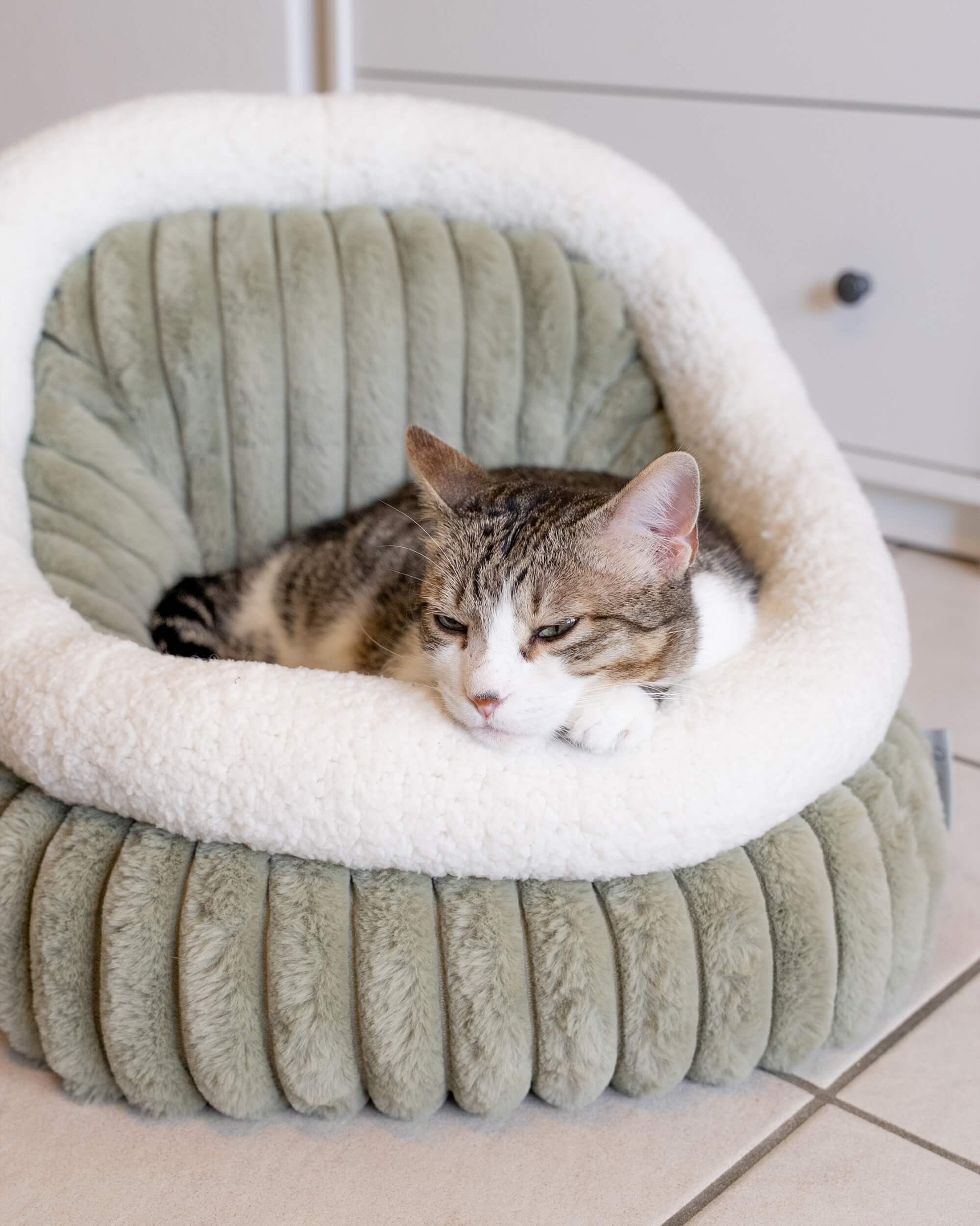 Ob Katze oder kleiner Hund – das Yuki Bett lädt zum Kuscheln, Entspannen und Wohlfühlen ein. Die hohe Rückenlehne vermittelt ein Gefühl von Schutz und Geborgenheit, sodass dein Vierbeiner sich sicher zurückziehen und entspannen kann.