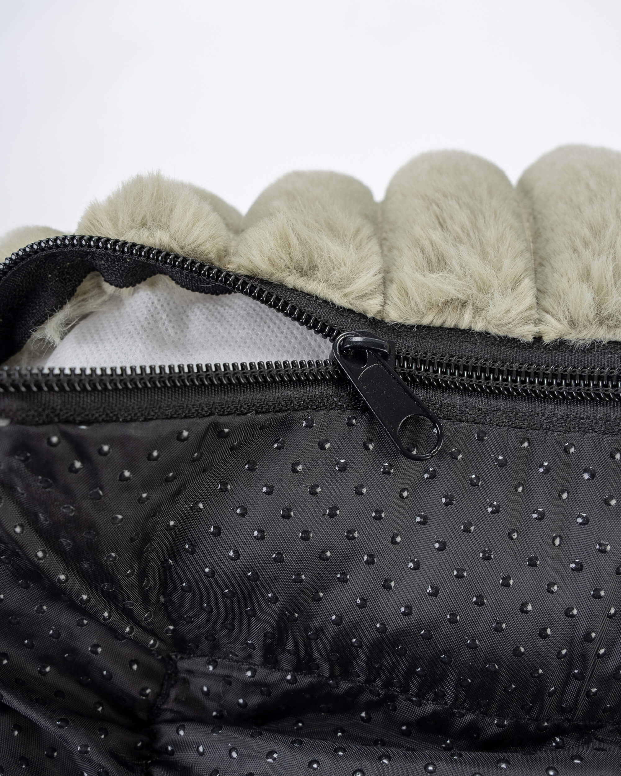 - Außenstoff in moderner Breitcord-Optik, Liegefläche und Rand aus flauschigem Teddystoff
