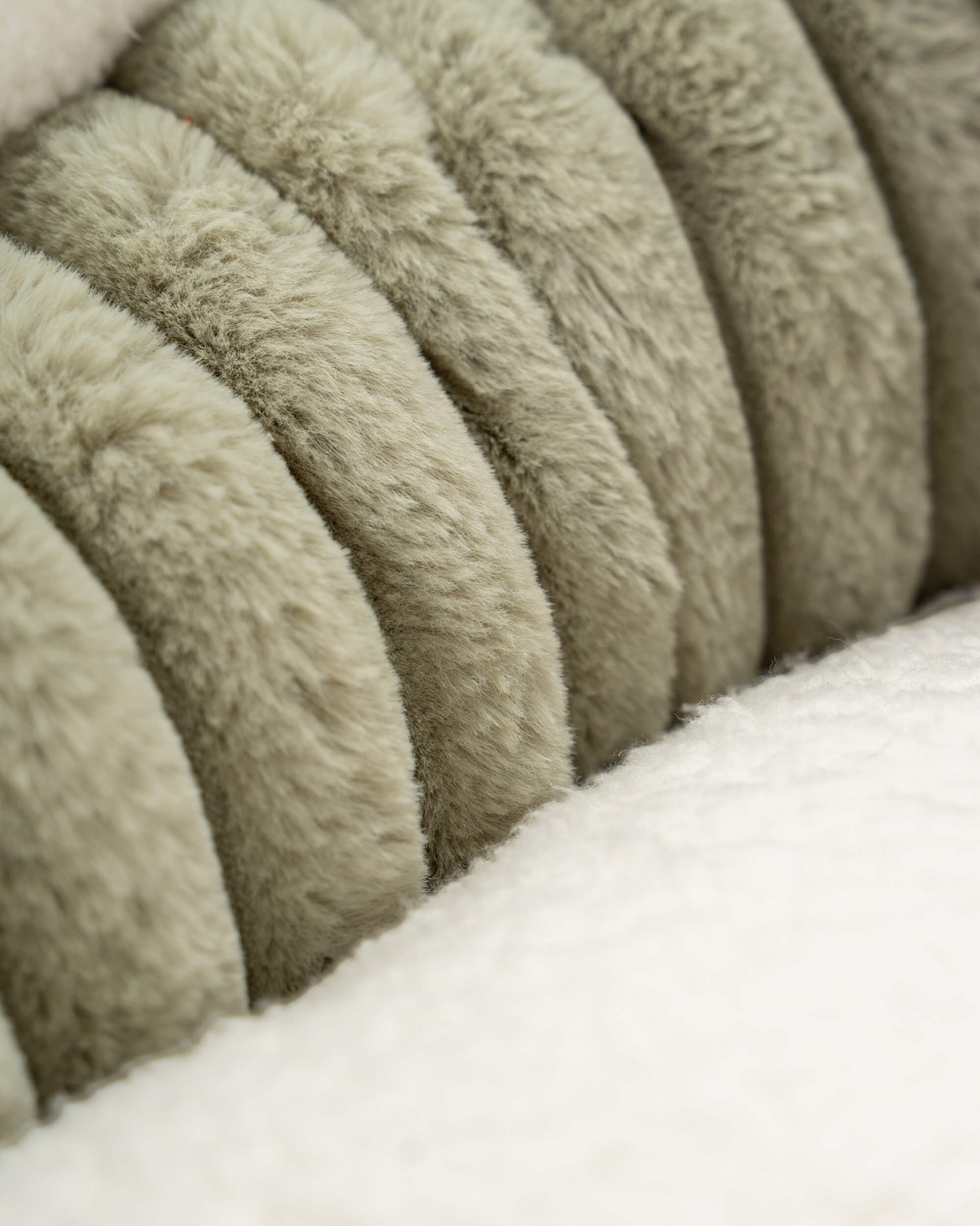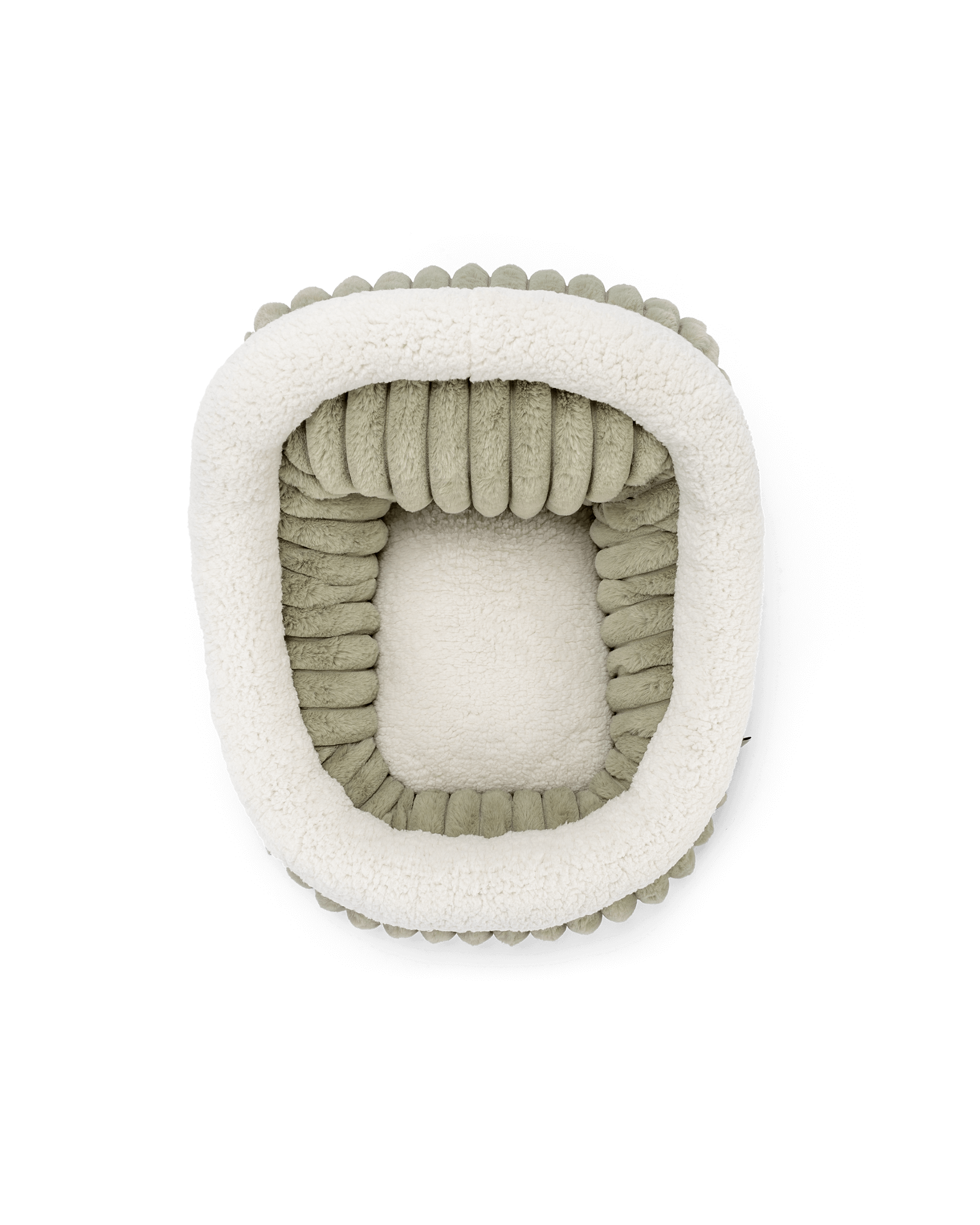 Die weichen Materialien sorgen für maximalen Komfort. Der Außenstoff in moderner Breitcord-Optik ist angenehm weich, während die Liegefläche und der Rand mit flauschigem Teddystoff extra Gemütlichkeit bietet.
