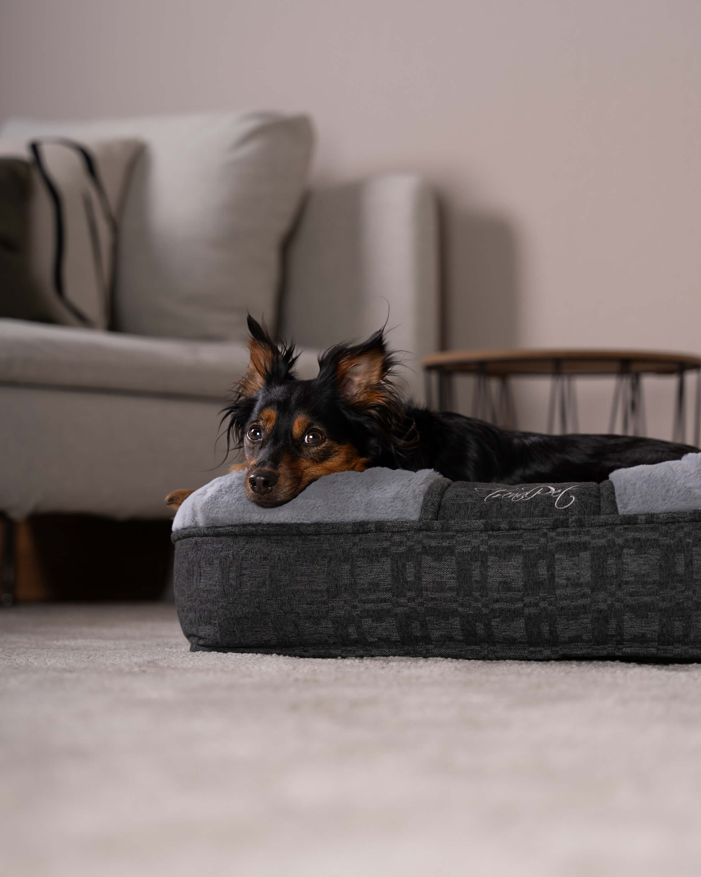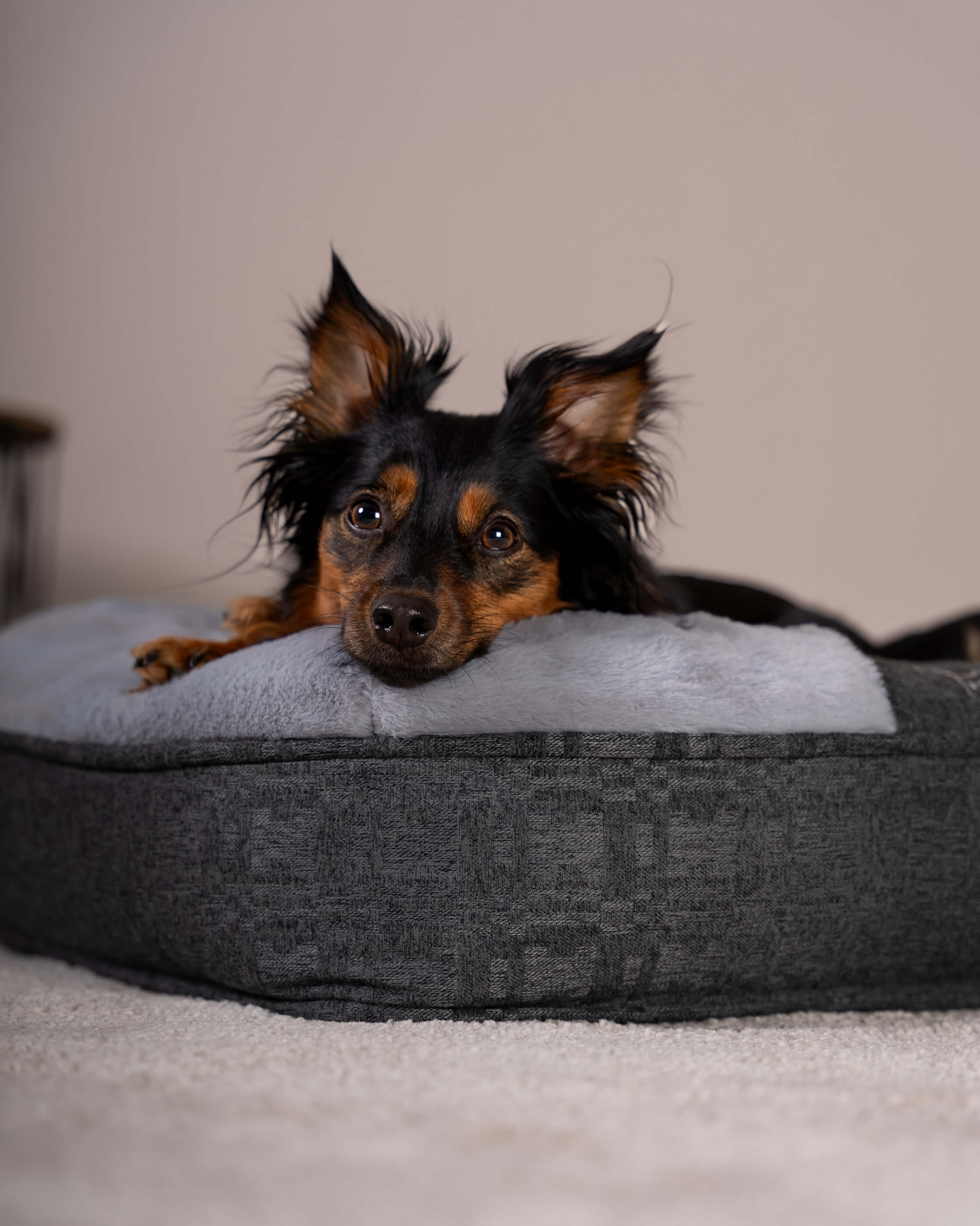 Die LunaLounge ist der perfekte kuschelige Platz, an dem kleine Hunde und Katzen entspannen und sich wohlfühlen können. Der hochgepolsterte Rand lädt zum Anlehnen ein, während das weiche, wendbare Innenkissen für extra Komfort sorgt – ideal zum Kuscheln, Dösen oder Träumen.