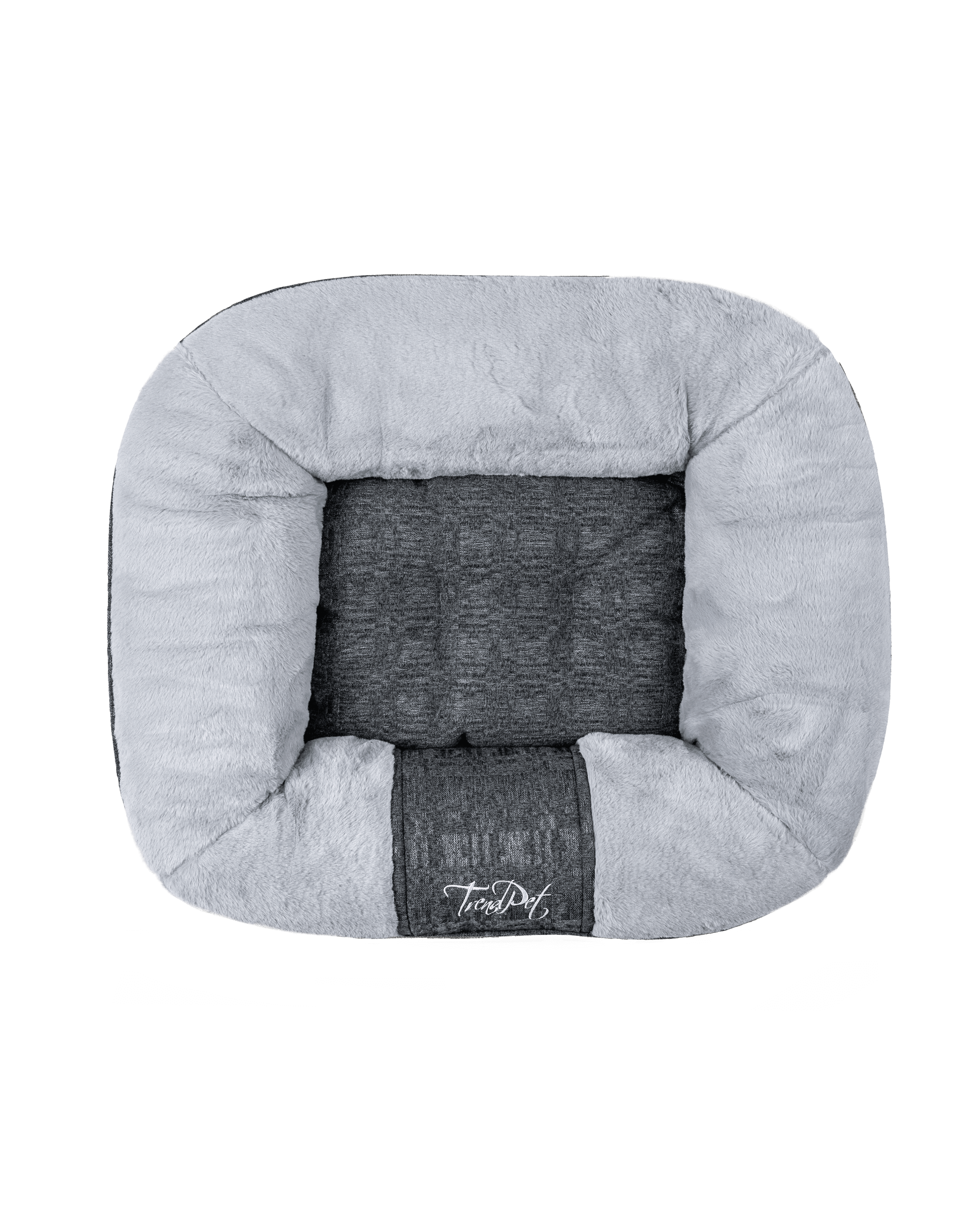 Der elegante graue Außenstoff harmoniert mit dem Innenflausch in Beige oder Grau und fügt sich stilvoll in jedes Zuhause ein. Praktisch: Der Bezug ist abnehmbar und bei 30 °C waschbar, sodass das Bett immer sauber bleibt.