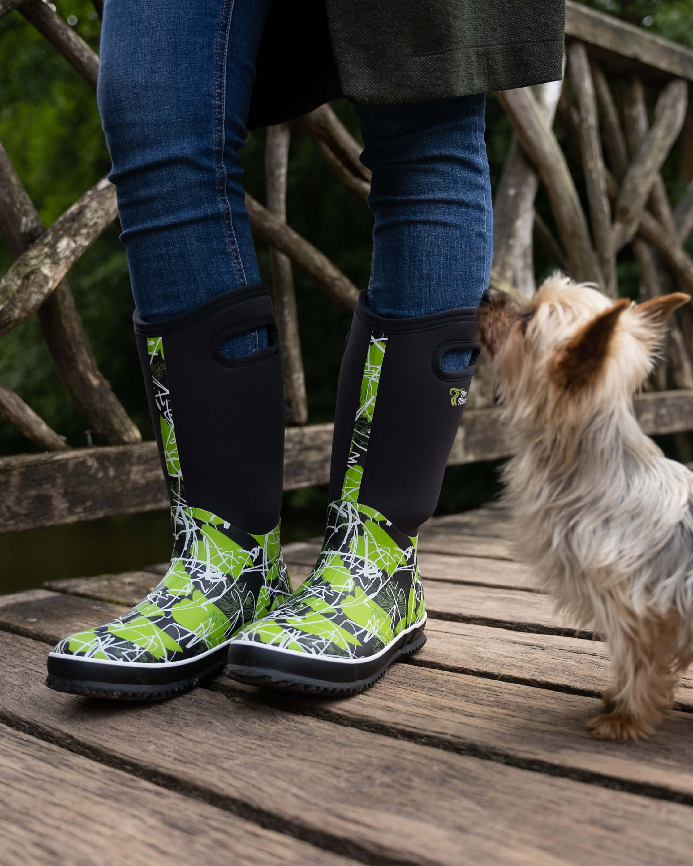 Die Neoprenstiefel von TwoTracks sind 100 % wasserdicht - ideal für den Spaziergang im Regen, matschige Wege und nasses Gras. Ob mit Hund oder ohne, bei der Gartenarbeit oder auf dem Hof. Mit den TwoTracks bist du mit mit trockenen Füßen unterwegs.