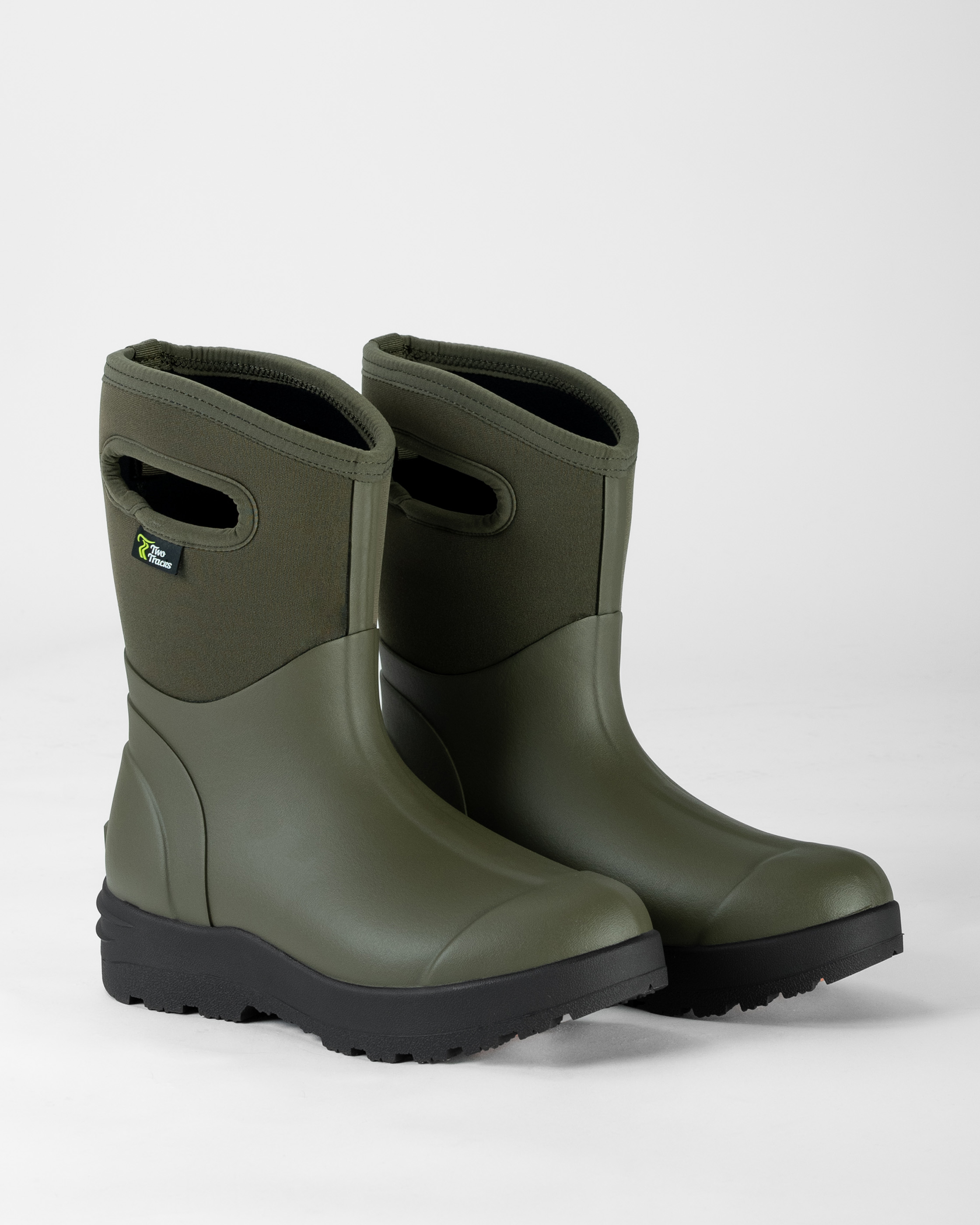 Mit den TwoTracks Baruga Olive Women Neoprenstiefeln in Olive genießt du jeden Schritt – ob an regnerischen Herbsttagen, im verschneiten Winter oder beim Spaziergang durch feuchte Wiesen und Wälder. Diese hochwertigen Ganzjahres-Neoprenstiefel sind zu 100 % wasserdicht und halten deine Füße zuverlässig warm und trocken.