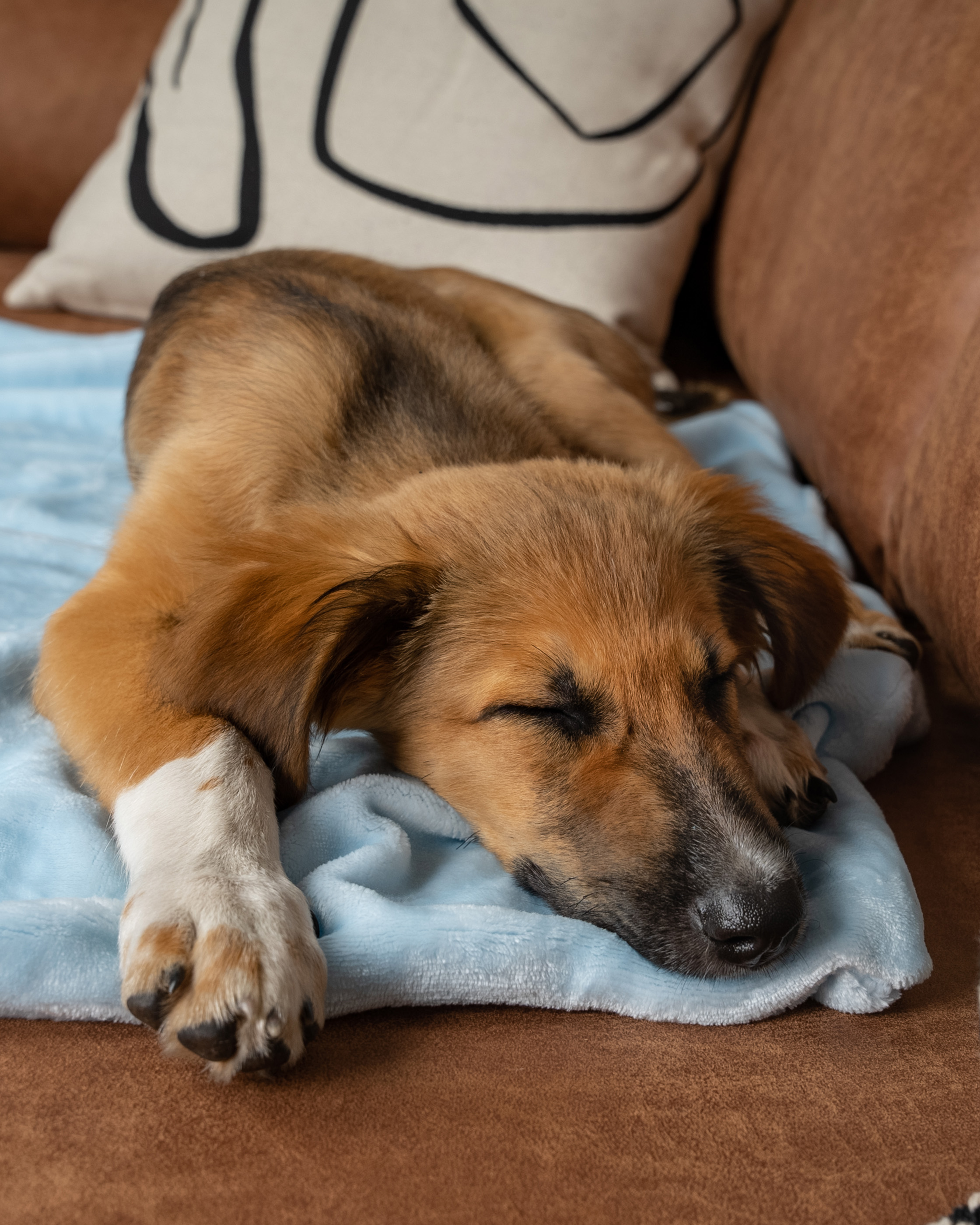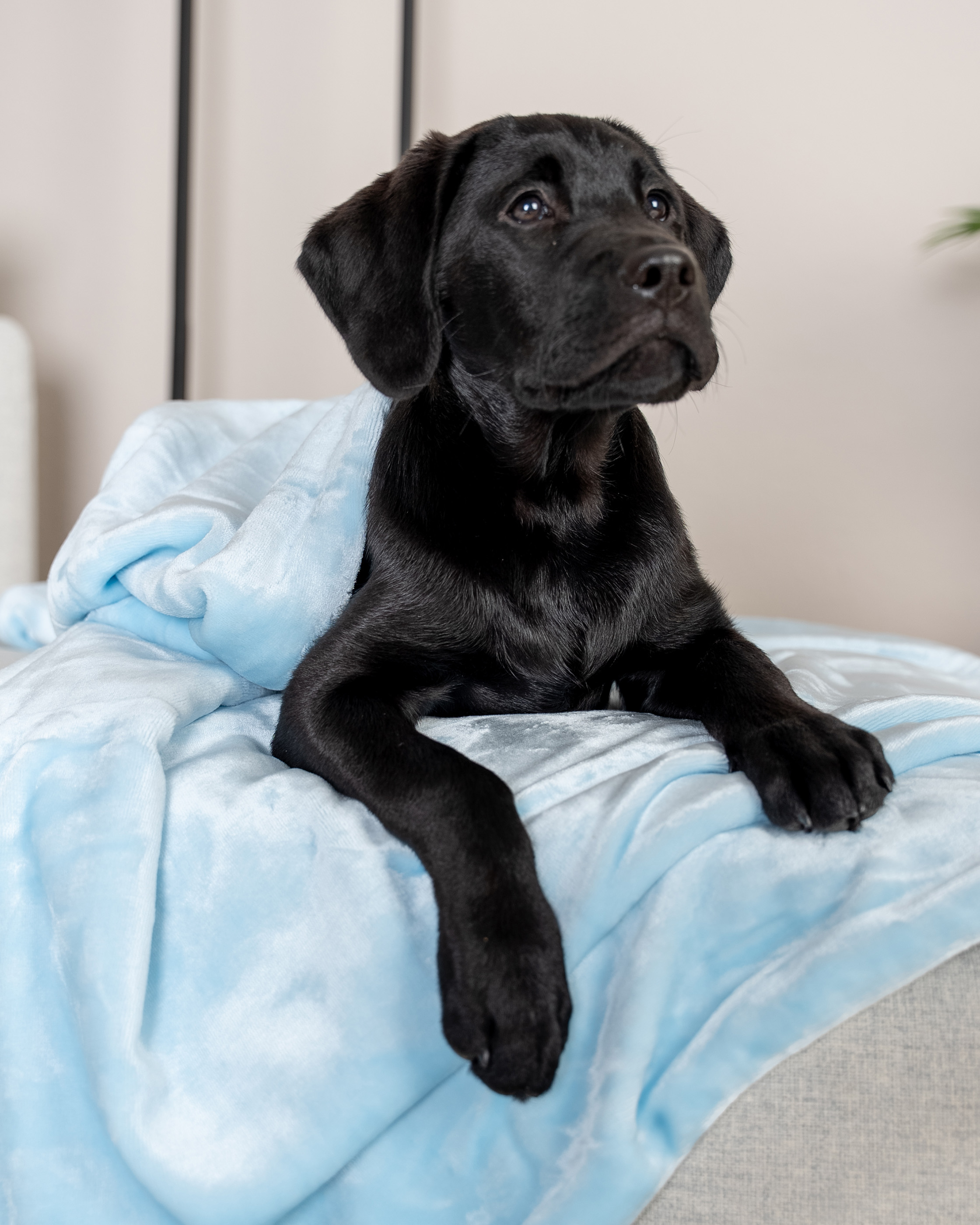 Die kuschelige Hundedecke Coco ist in drei wunderschönen Farbe erhältlich. In Blau, Rosa und klassischem Grau.