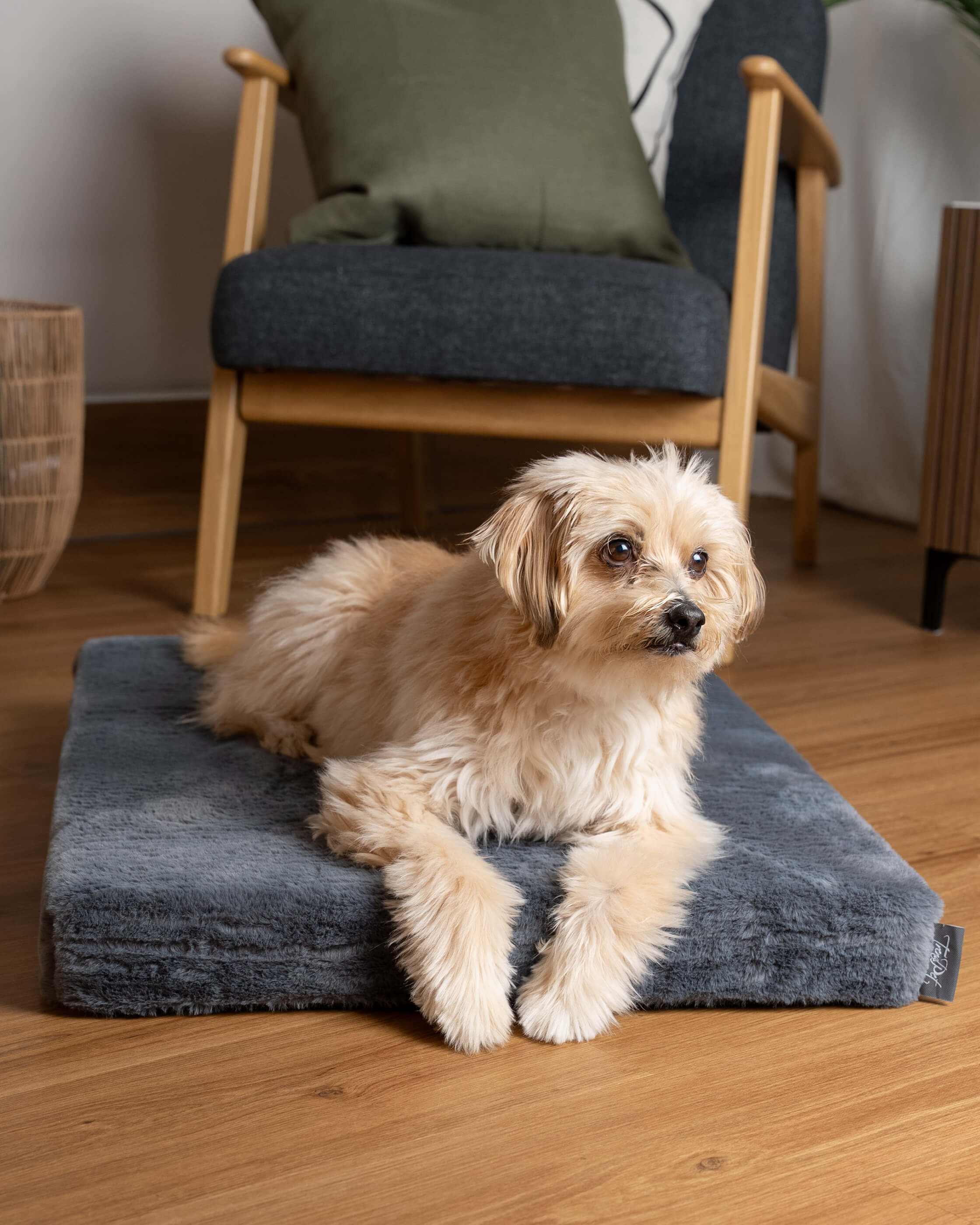 Die VitaMedog-Matratze ist eine 7 cm Matratze aus 100 % hochwertigem Memory Foam. Der orthopädische Liegeplatz ist ideal für ältere Hunde, Hunde mit Gelenkproblemen oder für Fellnasen, die einfach den maximalen Komfort einer Matratze genießen möchten. Die VitaMedog mit dem flauschigen Bezug ist in zwei Farben erhältlich, Grau oder Braun. Der kuschelige Bezug lässt sich einfach durch einen Reißverschluss abnehmen und ist bei 30 °C in der Waschmaschine waschbar. Die VitaMedog-Matratzen von TrendPet passen perfekt in die TPX-Pro Hundebox.
