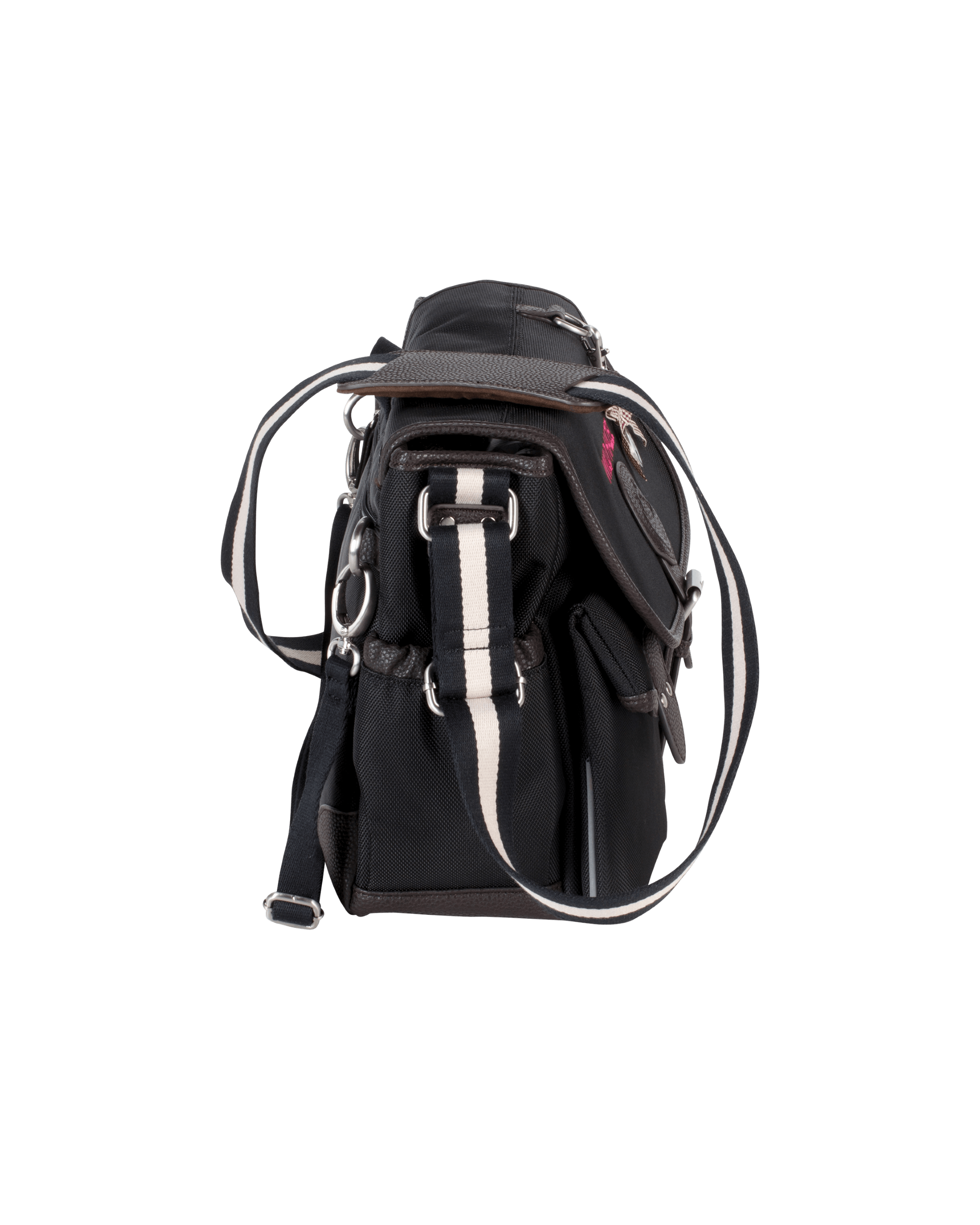 - seitliche Metallringe zur Befestigung von Zubehör per Karabiner (z.B. Poo Pouch; Lederfutterbeutel),