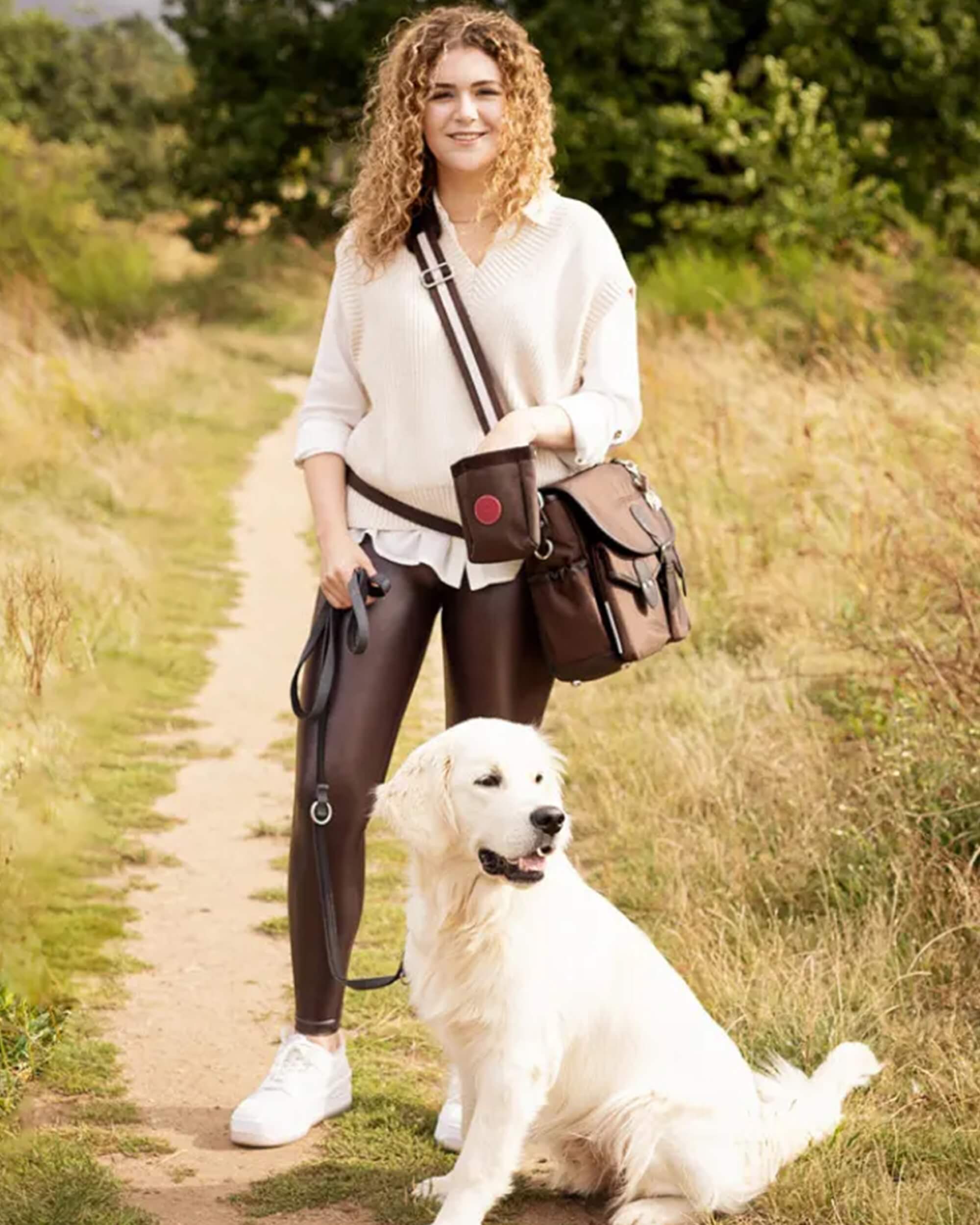Du brauchst unterwegs viel Stauraum und bist Liebhaber von Ordnung und sicherer Aufbewahrung? Dann ist Hazels Große dein Modell. Die Gassi- und Trainingstasche hat eine clevere Aufteilung mit vielen Fächern innen & außen für jede Menge Equipment. Wir nennen sie „unser Meisterstück„, denn die Gassitasche ist bis ins letzte Detail durchdacht und für dich als Hundebesitzer gemacht.