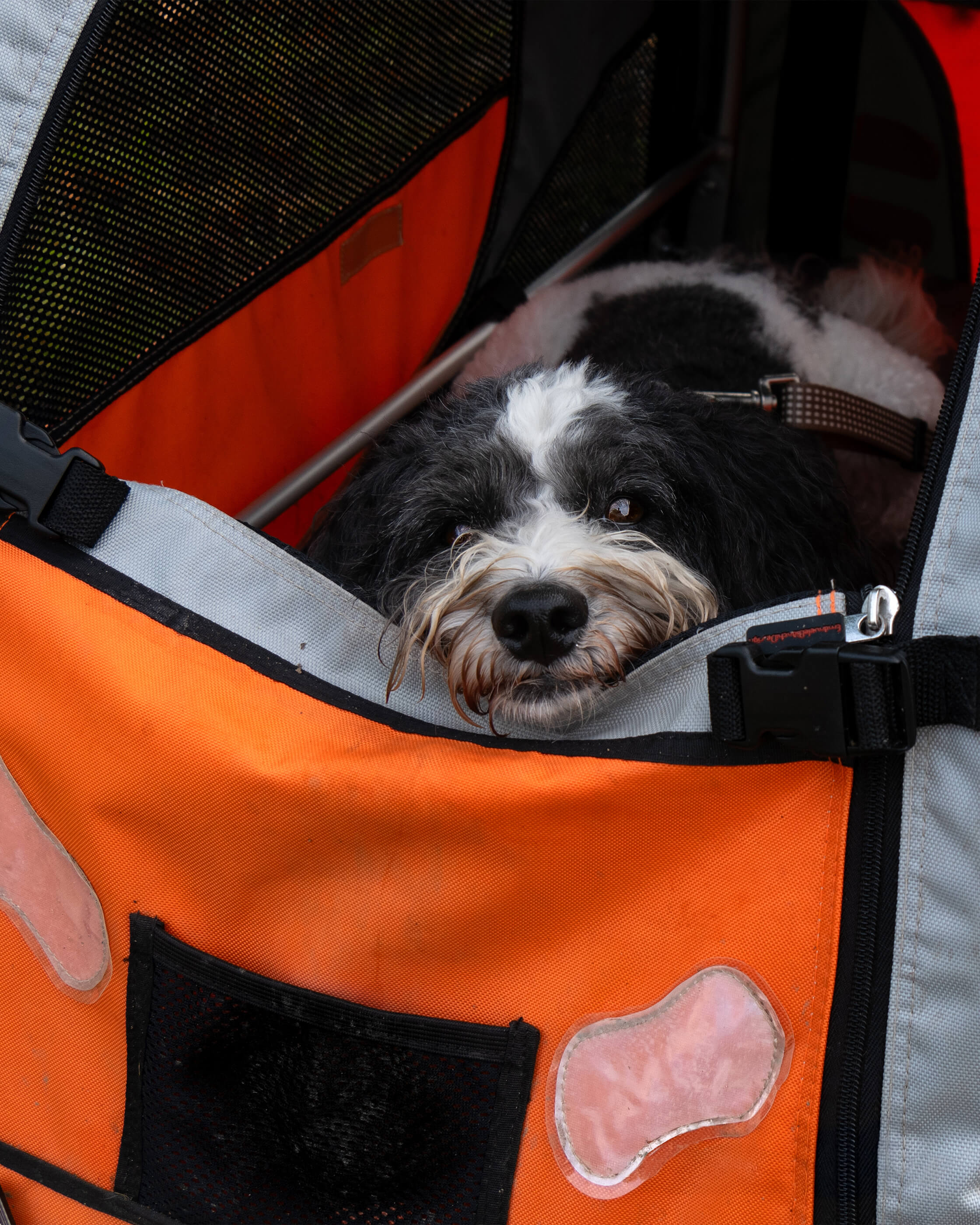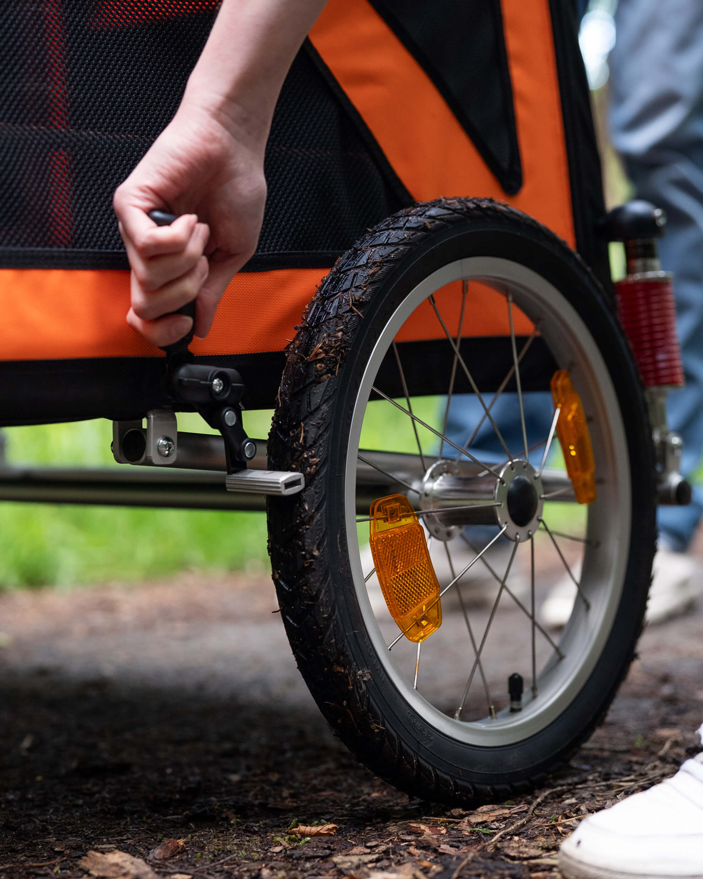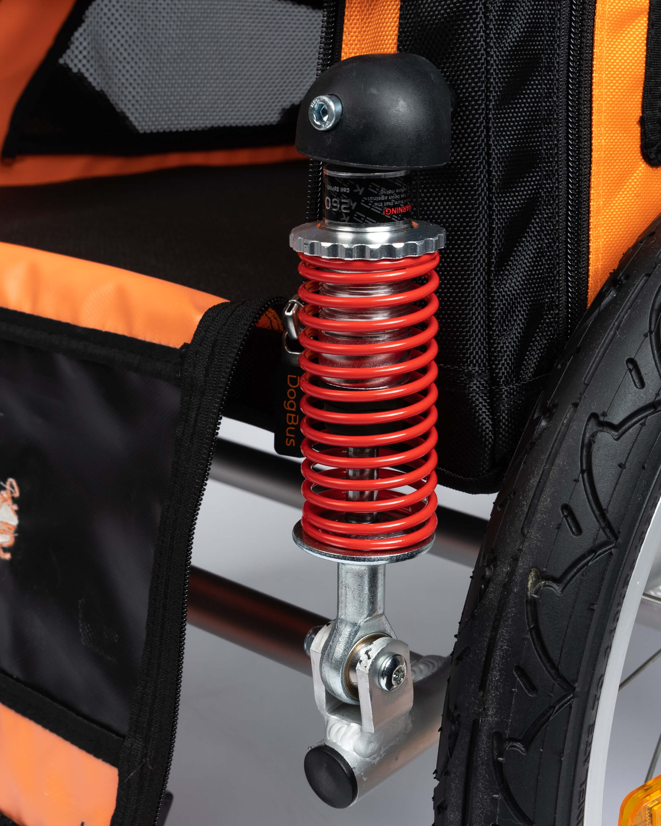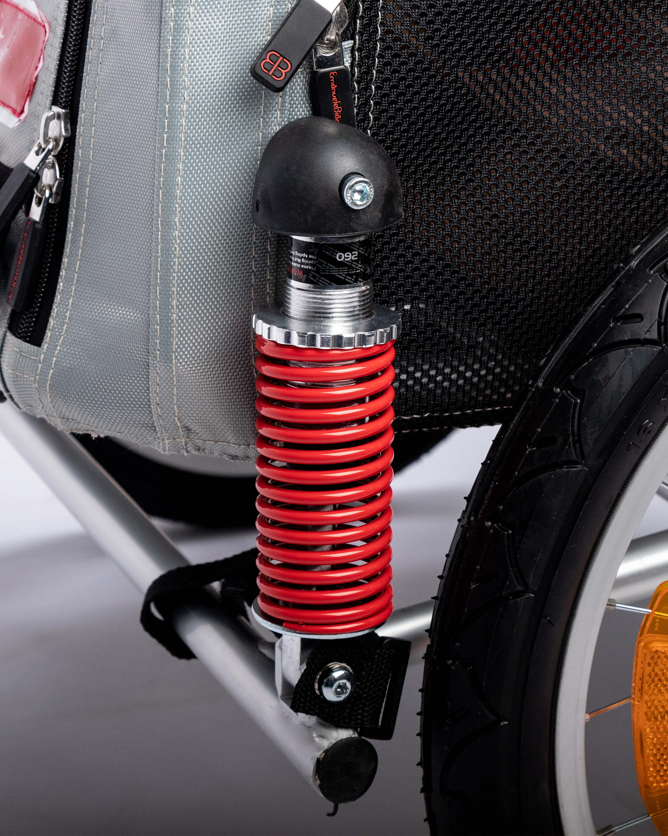 Der DogBus ist ein echter Wohlfühlort auf Rädern. Der robuste Aluminiumboden und die hochwertige Federung sorgen dafür, dass dein Hund bequem und sicher mitfährt – selbst auf längeren oder holprigen Routen. Dank der integrierten Feststellbremse bleibt der Anhänger beim Ein- und Aussteigen stabil stehen, was für zusätzlichen Komfort und maximale Sicherheit sorgt. Egal ob beim Stadtbummel oder auf einer langen Radtour – der DogBus macht eure Ausflüge noch entspannter und harmonischer.