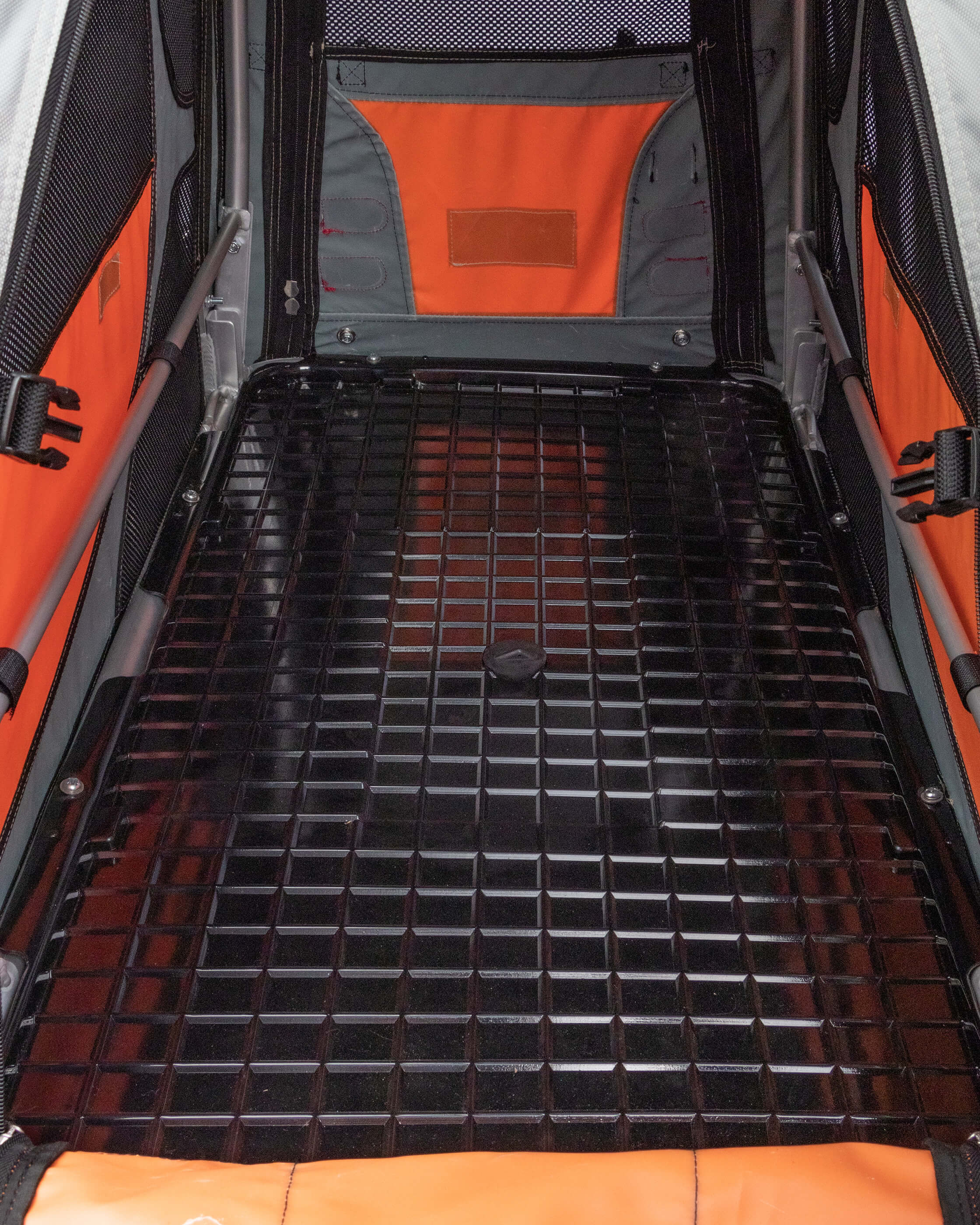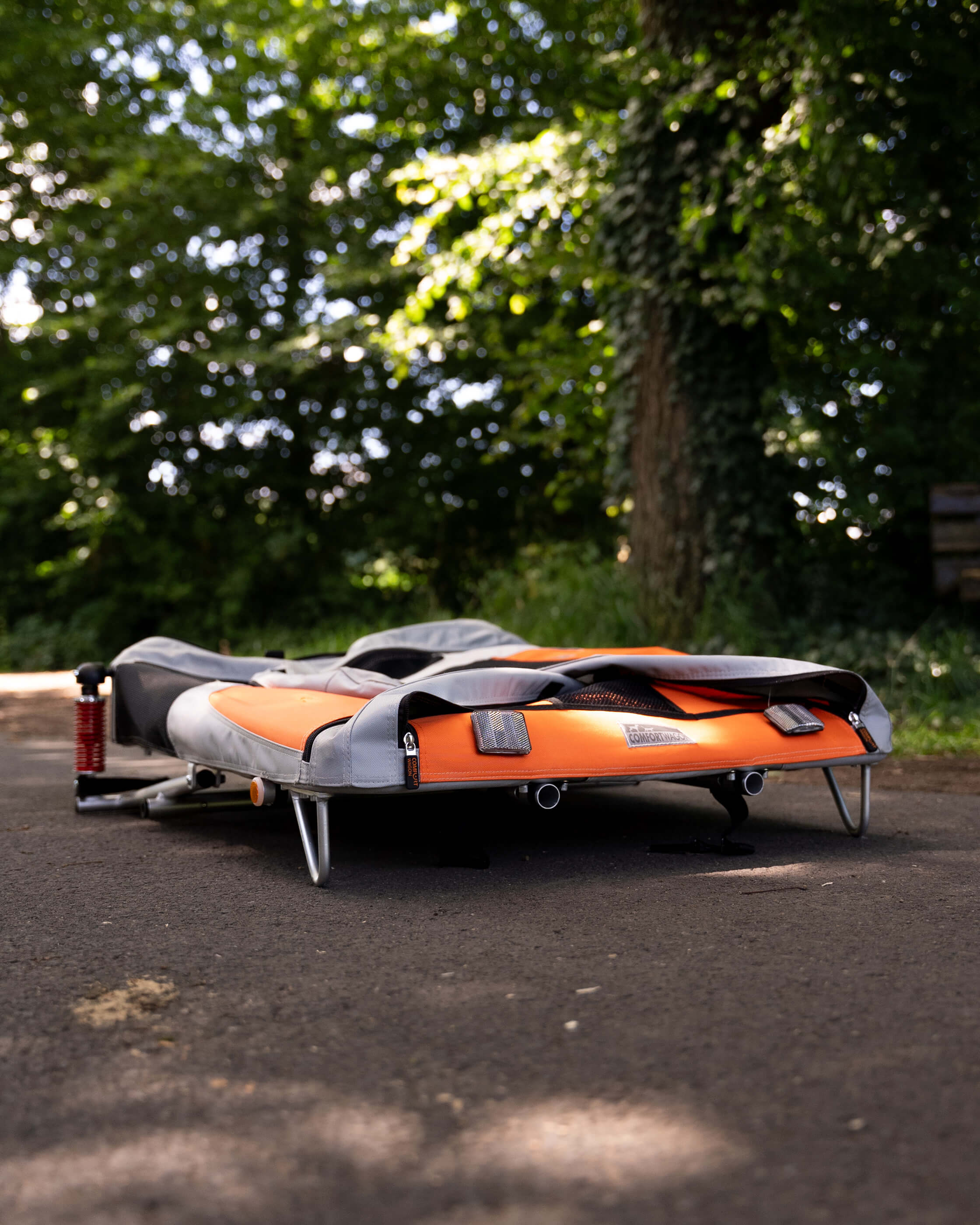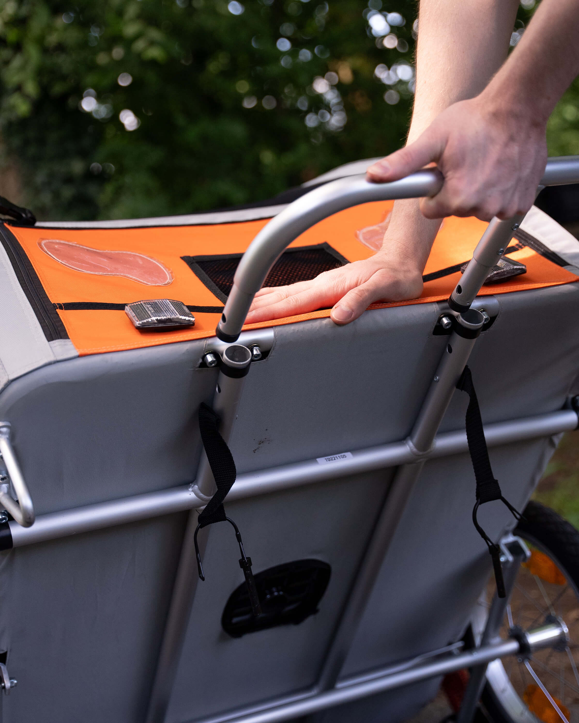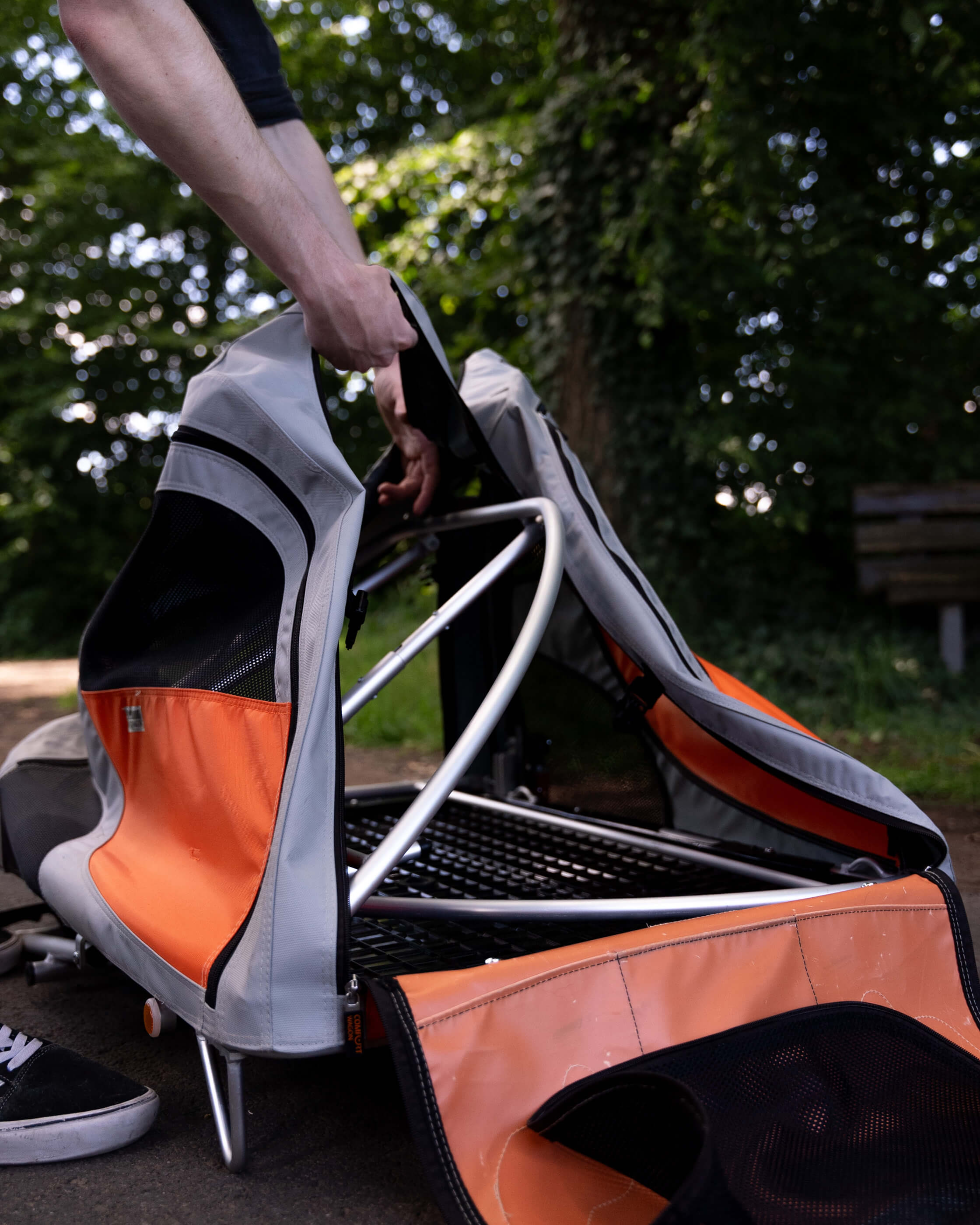 Der DogBus ist ein echter Wohlfühlort auf Rädern. Der robuste Aluminiumboden und die hochwertige Federung sorgen dafür, dass dein Hund bequem und sicher mitfährt – selbst auf längeren oder holprigen Routen. Dank der integrierten Feststellbremse bleibt der Anhänger beim Ein- und Aussteigen stabil stehen, was für zusätzlichen Komfort und maximale Sicherheit sorgt. Egal ob beim Stadtbummel oder auf einer langen Radtour – der DogBus macht eure Ausflüge noch entspannter und harmonischer.